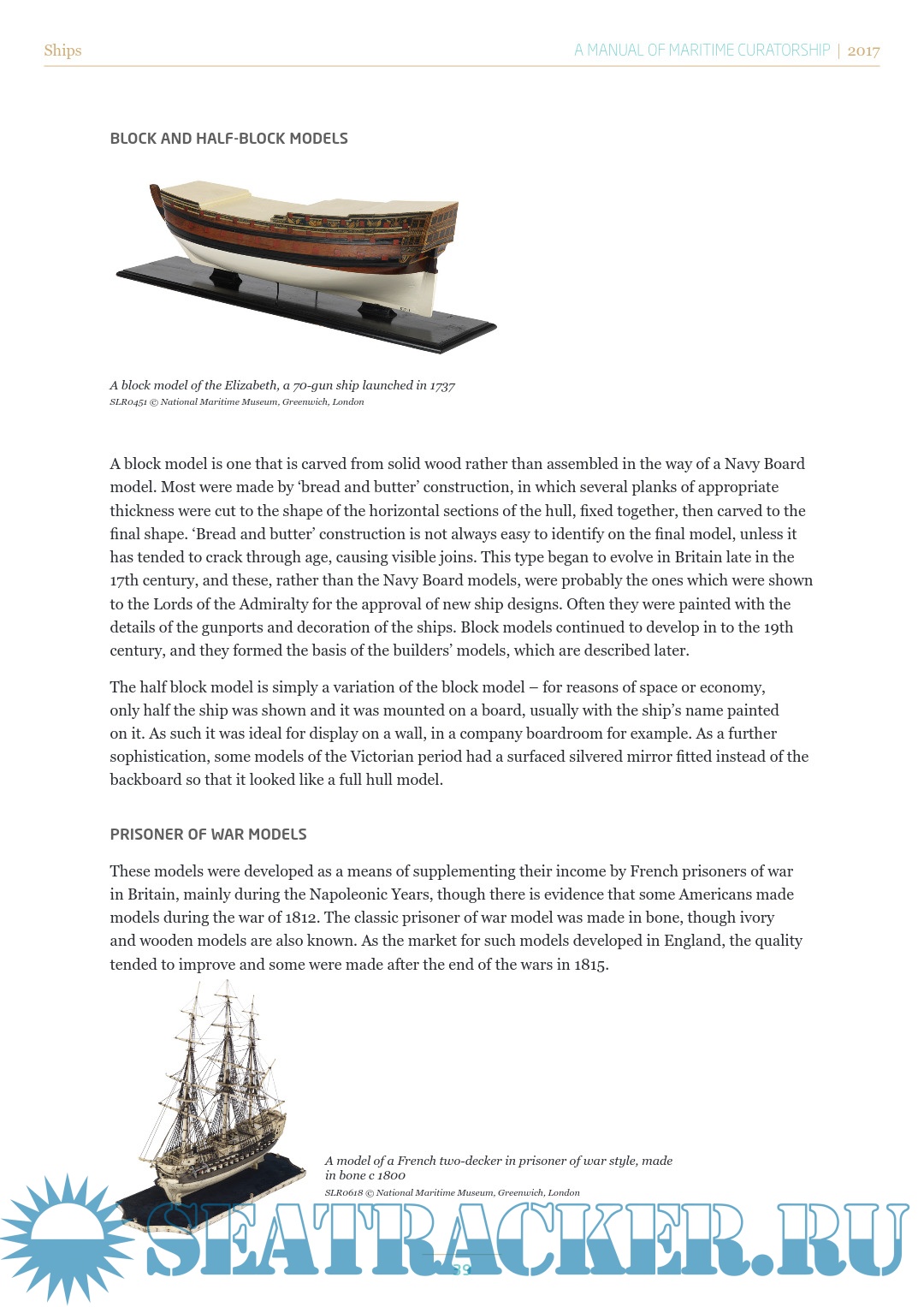 Year: 2017 Language: English Author: National Maritime Museum, Genre: Historical Publisher: National Maritime Museum, Format: PDF Quality: eBook Pages count: 65 Description: Models are perhaps the best way of representing the ship, although care needs to be taken with interpretation – the old-fashioned image of a maritime museum is a room stuffed with ship models with very little effort to interpret them. It is better if they can be arranged to tell the story of the development of ships in general or of a particular type, or illustrate the uses and art of models as in the current gallery at Chatham Historic Dockyard, or alternatively individual models can form part of a wider display