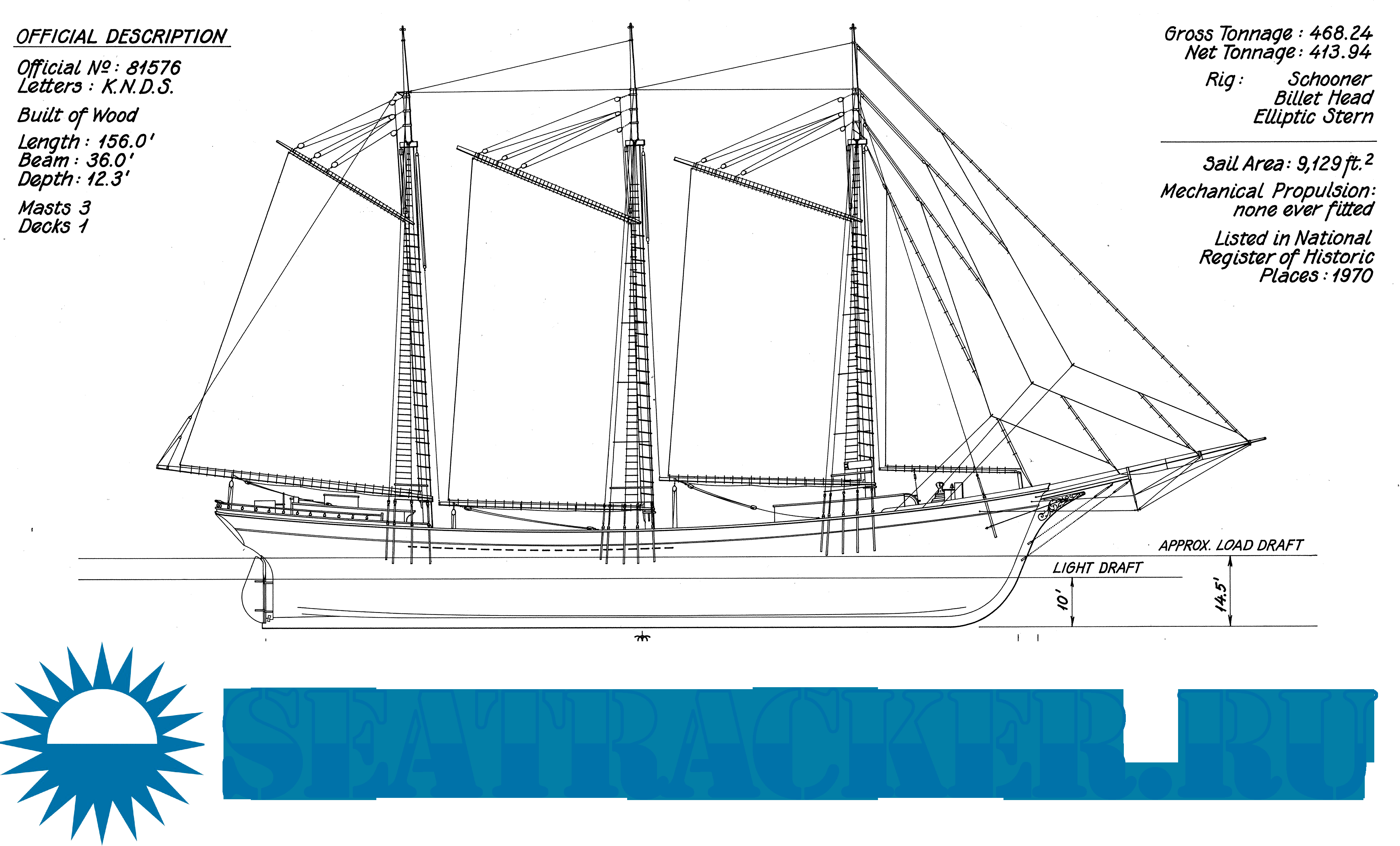 Чертежи и изображения американской трёхмачтовой шхуны "Wawona" 1897 год