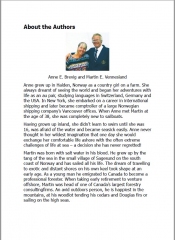 Год выпуска: 2013 Язык: Английский Автор: Anne E. Brevig and Martin Vennesland Издание: 1 Формат: PDF Качество: Изначально компьютерное (eBook) Количество страниц: 106 Описание: At the peak of their careers, Anne Brevig and Martin Vennesland made the decision of their lives: they chose freedom and a highly uncertain future on the high seas instead of secure jobs and the safety and comfort of life ashore. In order to finance their dream, they sold their house and most of their belongings and moved onboard their 40-foot sailboat. It became their one and only home for 15 years. Neither imagined that they were going to spend 9 years on the 7 seas and journey more than 56,000 nautical miles! NOR SIGLAR’s blue water adventure is not about breaking any records. Its main focus is meeting people from different backgrounds and cultures - encounters that take on entirely different dimensions when sailing off the beaten track far away from the traditional tourist routes. “Why are you rushing through Paradise?” homesteaders on an exotic Robinson Crusoe island asked. The question became a motto for Anne and Martin during the rest of their voyage. Slowing down, they were able to establish personal contacts with locals. The book is saturated with enchanting encounters, unique experiences and drama. They also found that paradise still exists and can be explored. Anne and Martin have crossed the big oceans and visited 76 countries and island nations. They have realized their dreams. Now they hope that their book will inspire others to pursue their dreams - to dare to take the leap. It certainly gives a rare opportunity to live vicariously in NOR SIGLAR’S wake.