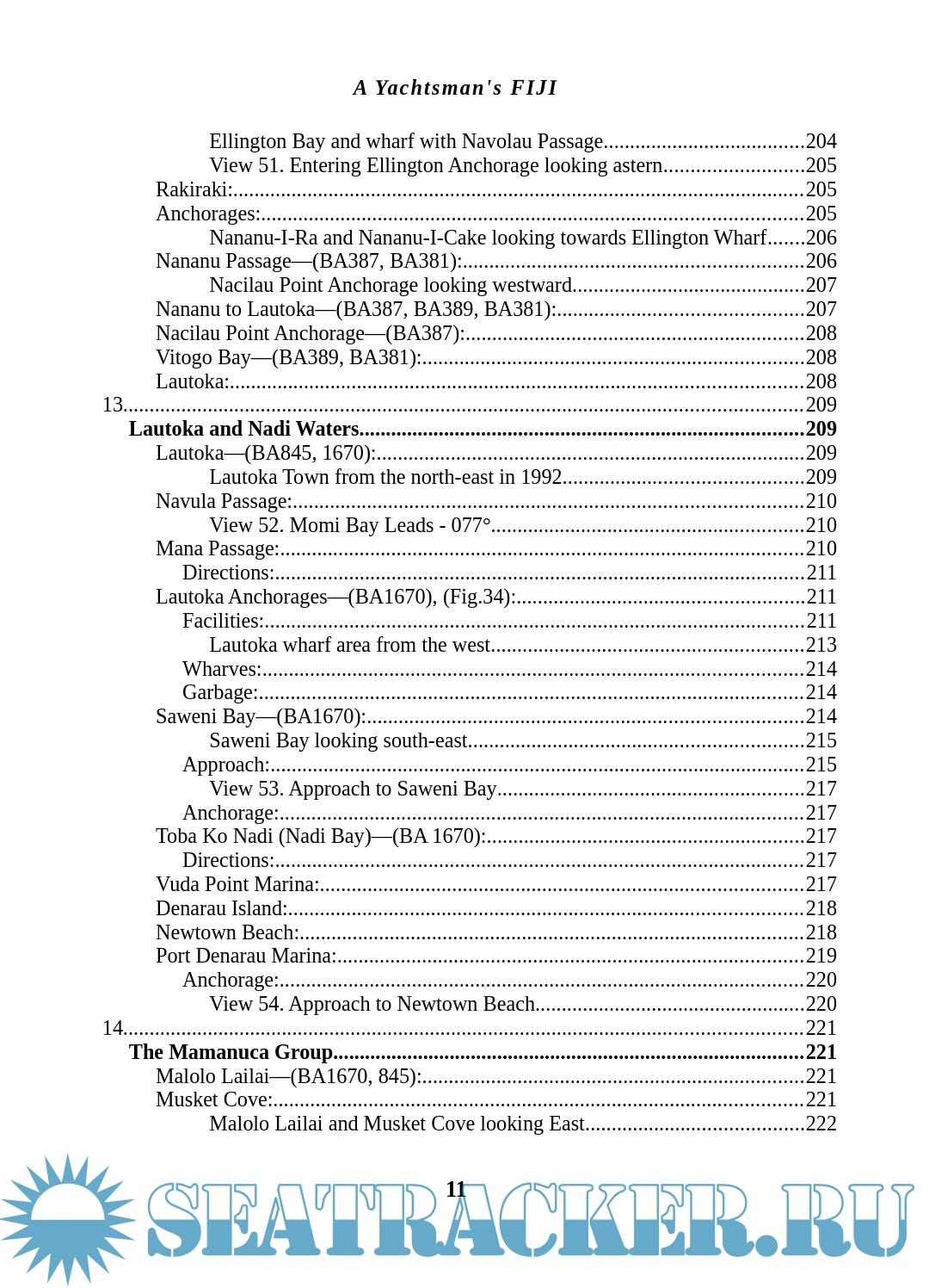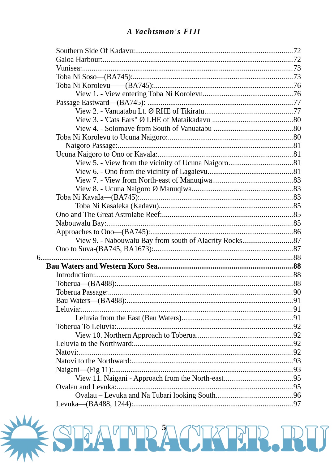Year: 1987 Language: English Author: Calder M. Genre: Guide Publisher: The Cruising Classroom ISBN: 0 646 14682 3 Format: PDF Quality: eBook Pages count: 265 Description: In July of 1984, I arrived in Fiji from Vanuatu in my yacht 'Eureka', and after clearing customs at Lautoka, set off to cruise in the Yasawas. Charts were non-existent, but I was able to obtain some second-hand copies of 'Pickmere's' from a fellow yachtie who was moving on to Vanuatu. Until that time I had no knowledge of their existence and had already found that, except for the Pacific Islands Pilot Vol.II, published by The Hydrographer of the Navy, there was no information of any sort on the waters of Fiji, particularly those areas of interest to a yachtsman.