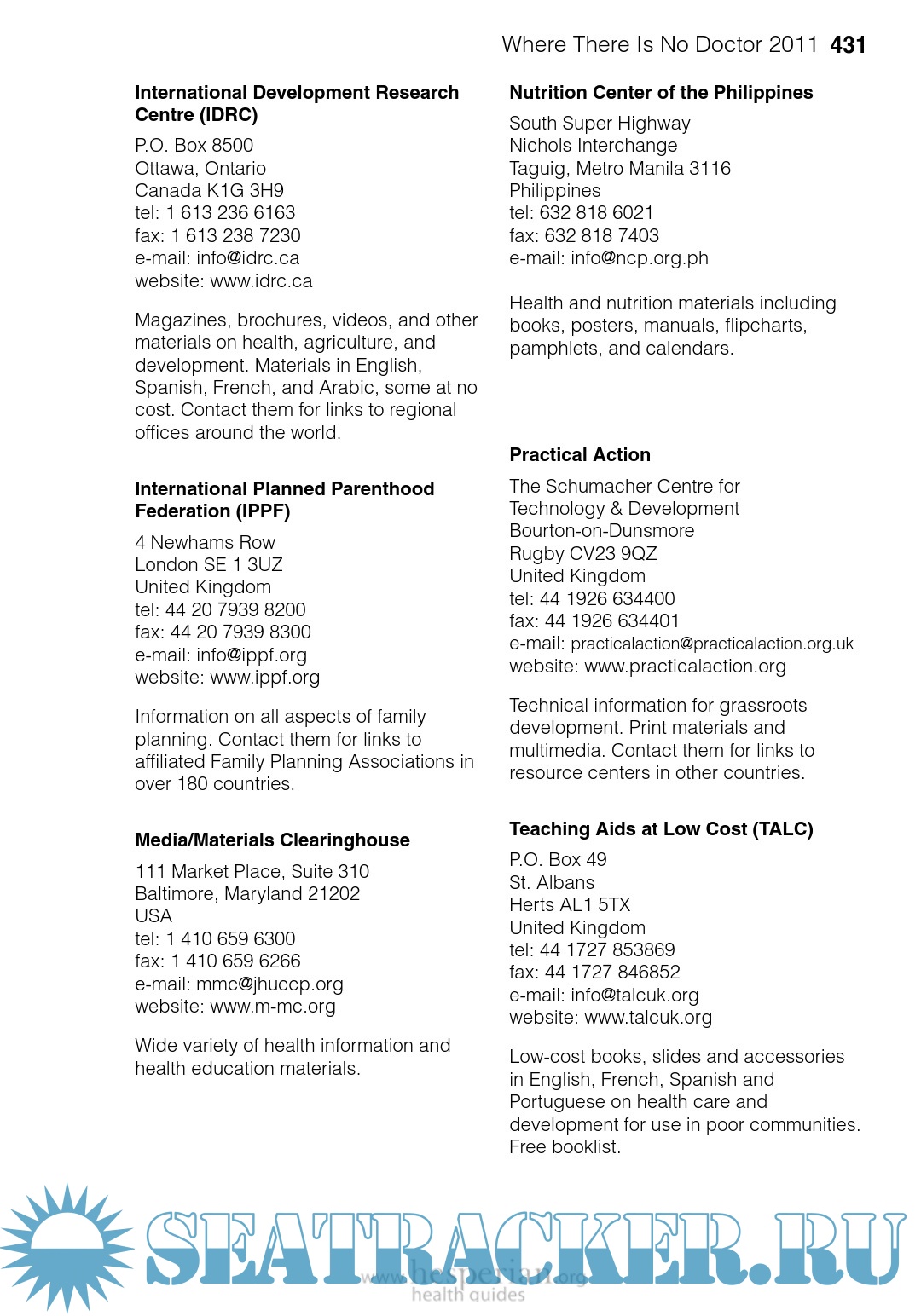 Description: With 3 million copies in print in over 50 languages, Where There Is No Doctor is the most widely used health care manual in use in developing countries today. Using simple language and hundreds of drawings, the book provides information about recognising, treating and preventing common illnesses and injuries. But it is far more than simple first aid information. It covers a wide range of subjects that affect the health of the villager - from diarrhoea to tuberculosis, from helpful and harmful home remedies to the cautious use of certain modern medicines. Special importance is placed on cleanliness, a healthy diet, vaccination, childbirth and family planning. The African edition covers diseases commonly found in Africa.