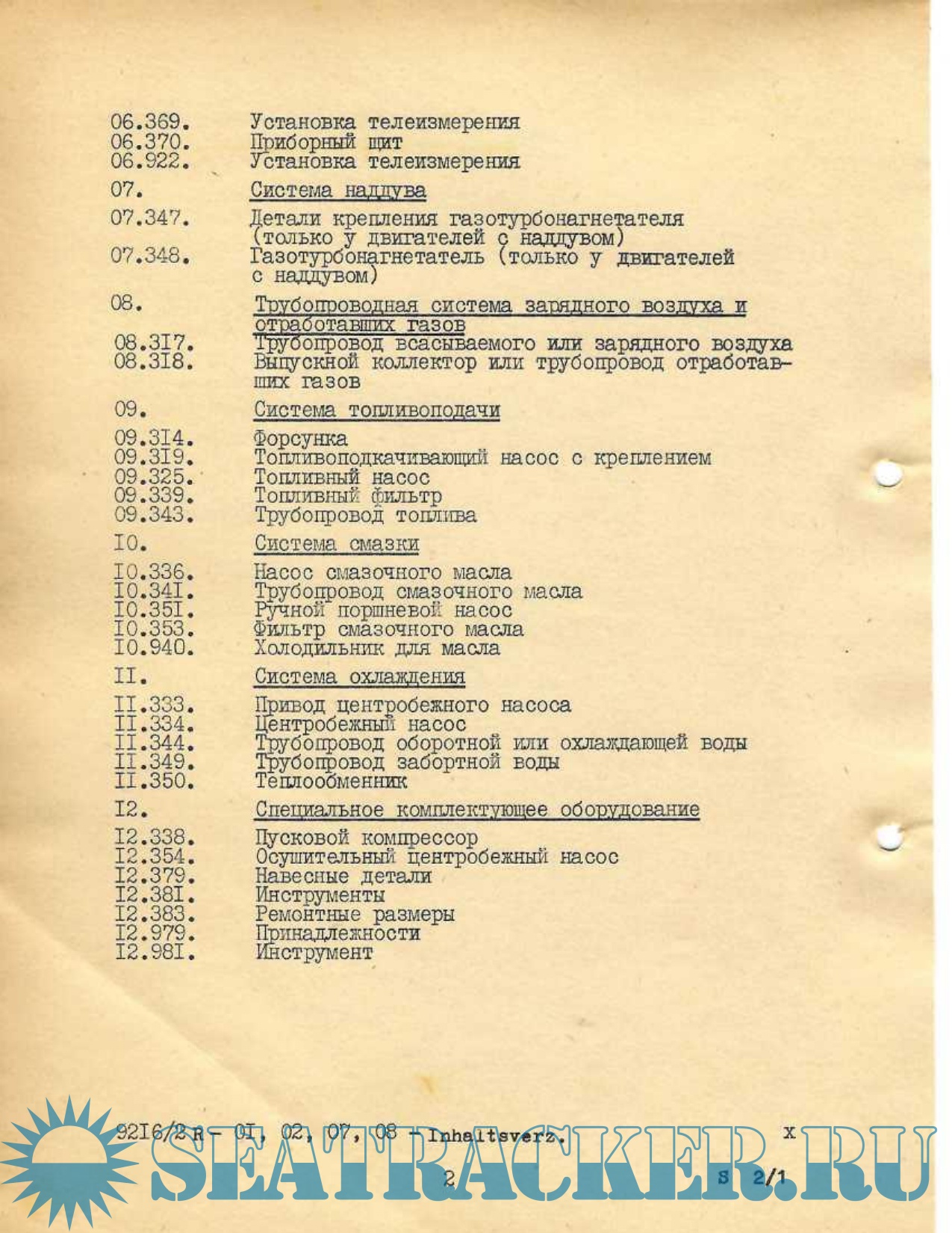 Список деталей для судового дизельного двигателя 8NVD 48-2, 8NVD 48-A-2, 8NVDS 48-2 и 8NVDS 48-A2…