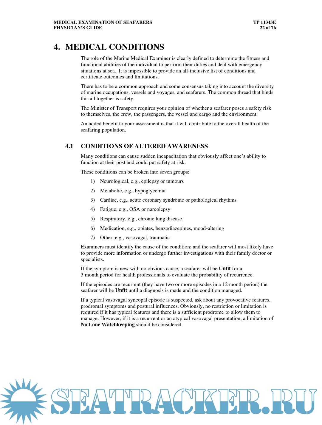 • sets out the factors designated Marine Medical Examiners should take into account when conducting medical examinations;