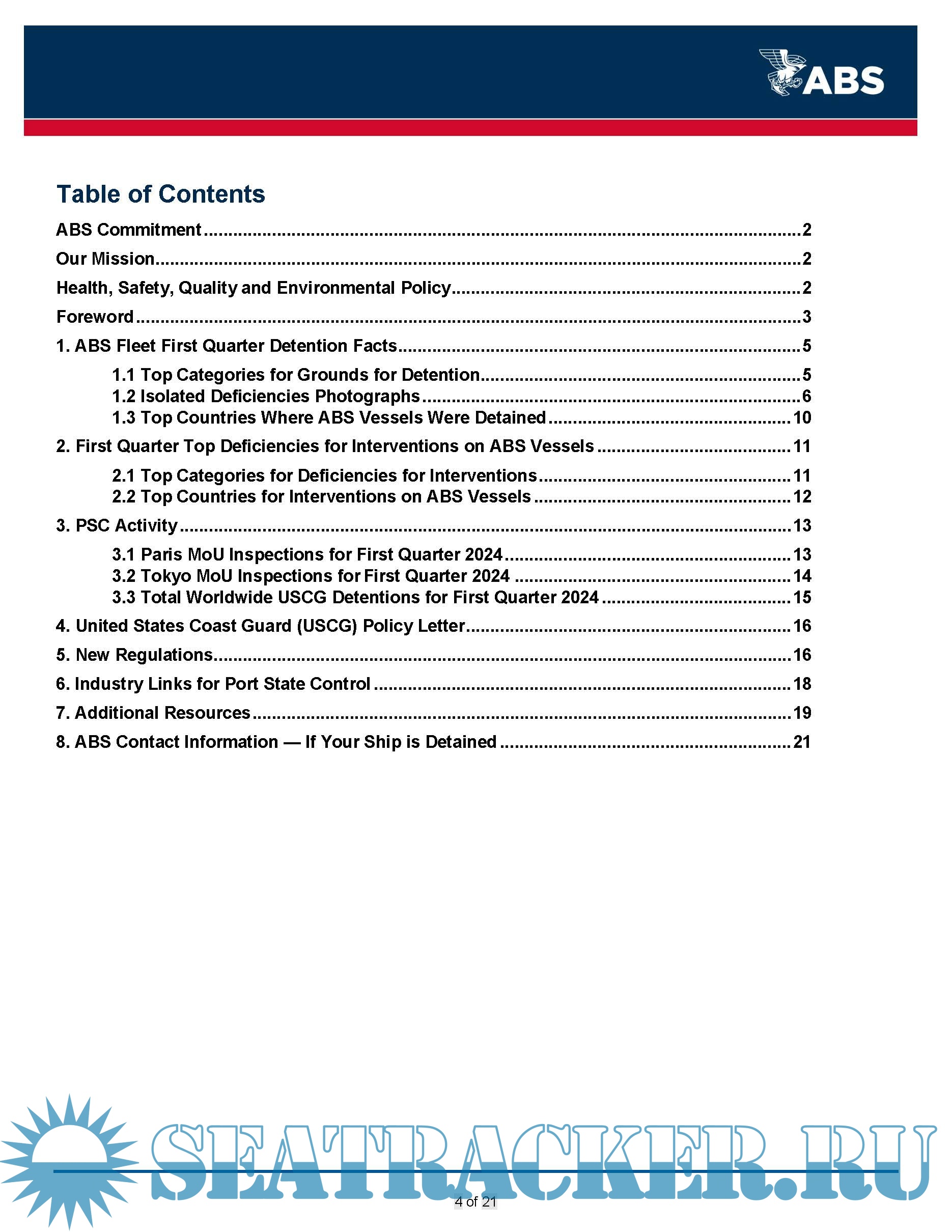 Description: This ABS Quarterly Reports on Port State Control (PSC) provides information to owners on deficiencies identified on ABS vessels during inspections carried out by the various PSC regimes globally during the 1st and 2nd quarters of 2024.