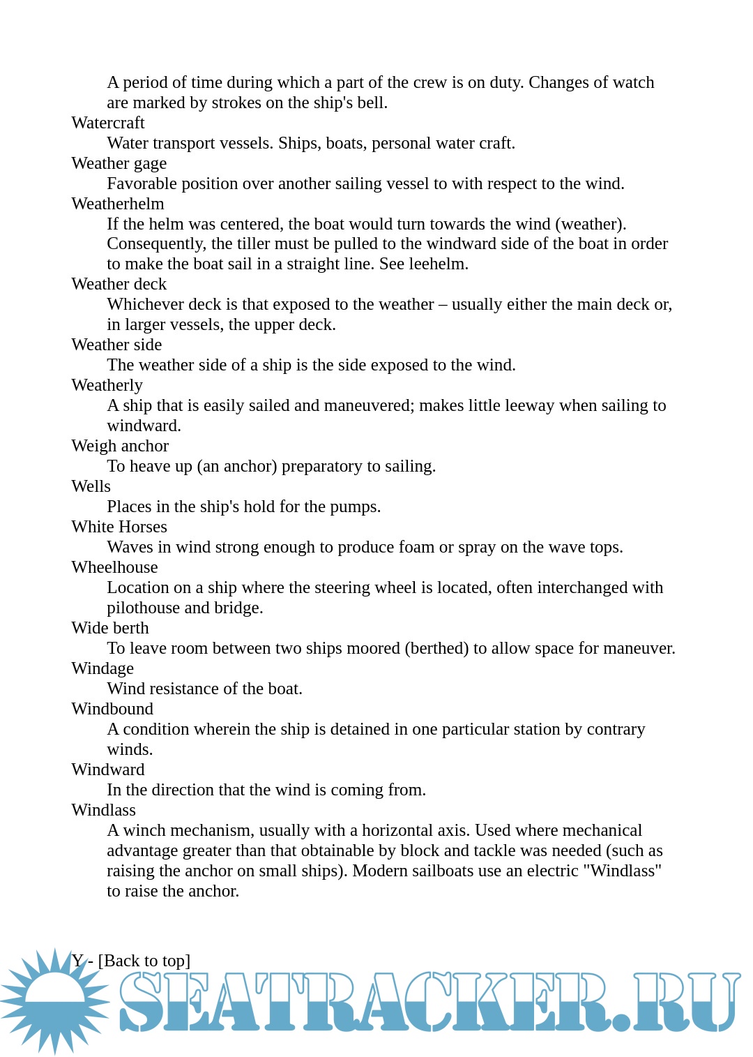 Year: - Language: English Author: - Genre: Dictionary Format: PDF, DOCx Quality: eBook Pages count: 36 Description: Please enjoy this nautical glossary of sailing terms. Some are ones that we use in everyday language - now you can know the origins.