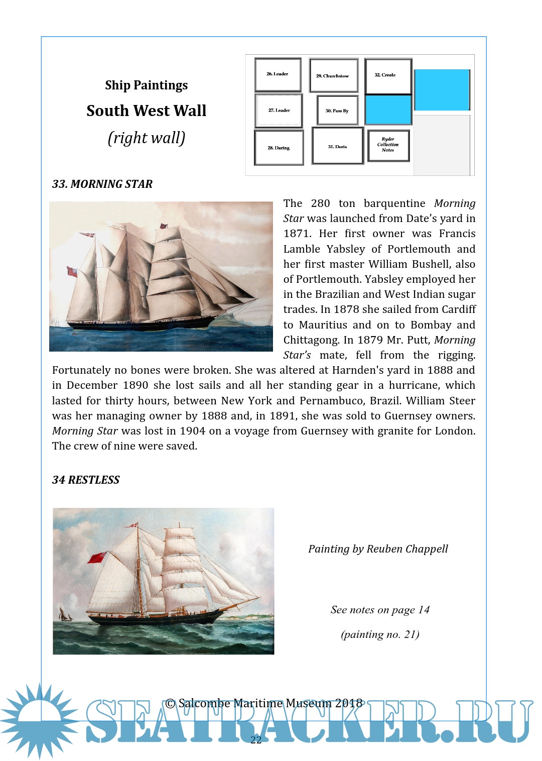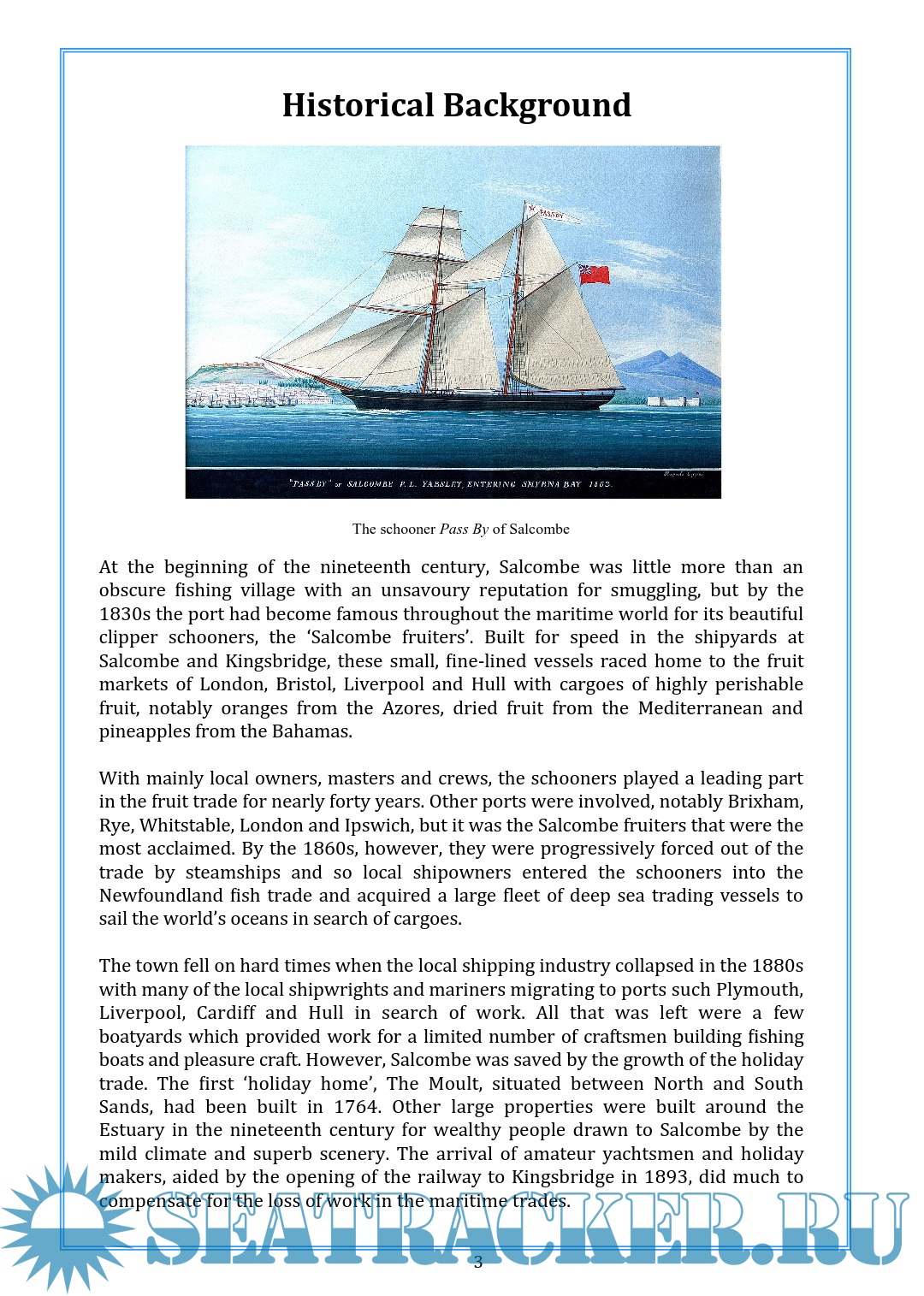 Year: 2024 Language: English Author: Salcombe Maritime museum Genre: Guide Publisher: Salcombe Maritime museum Format: PDF Quality: eBook Pages count: 24 Description: At the beginning of the nineteenth century, Salcombe was little more than an obscure fishing village with an unsavoury reputation for smuggling, but by the 1830s the port had become famous throughout the maritime world for its beautiful clipper schooners, the ‘Salcombe fruiters’. Built for speed in the shipyards at Salcombe and Kingsbridge, these small, fine-lined vessels raced home to the fruit markets of London, Bristol, Liverpool and Hull with cargoes of highly perishable fruit, notably oranges from the Azores, dried fruit from the Mediterranean and pineapples from the Bahamas.