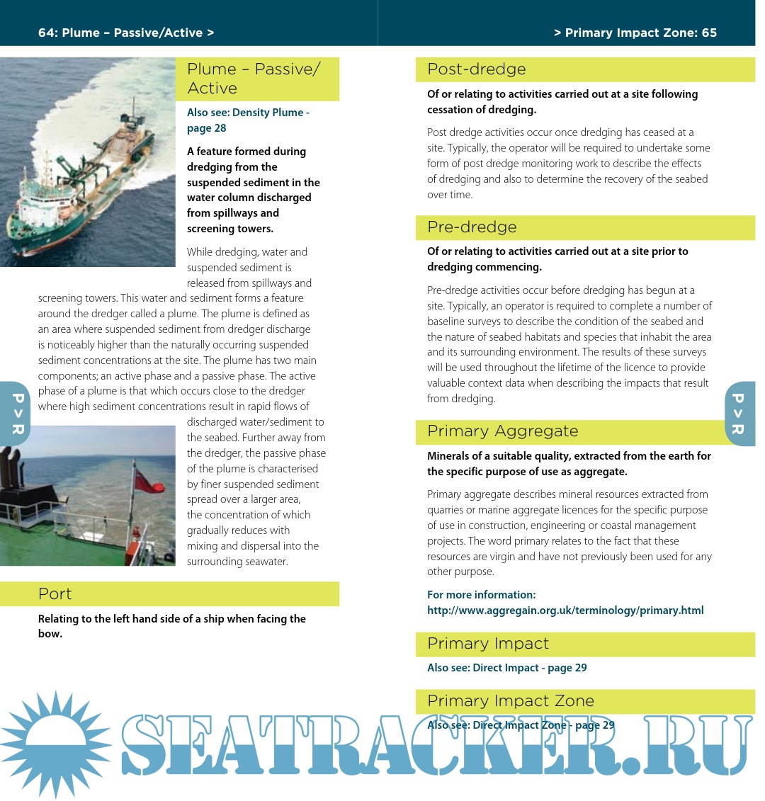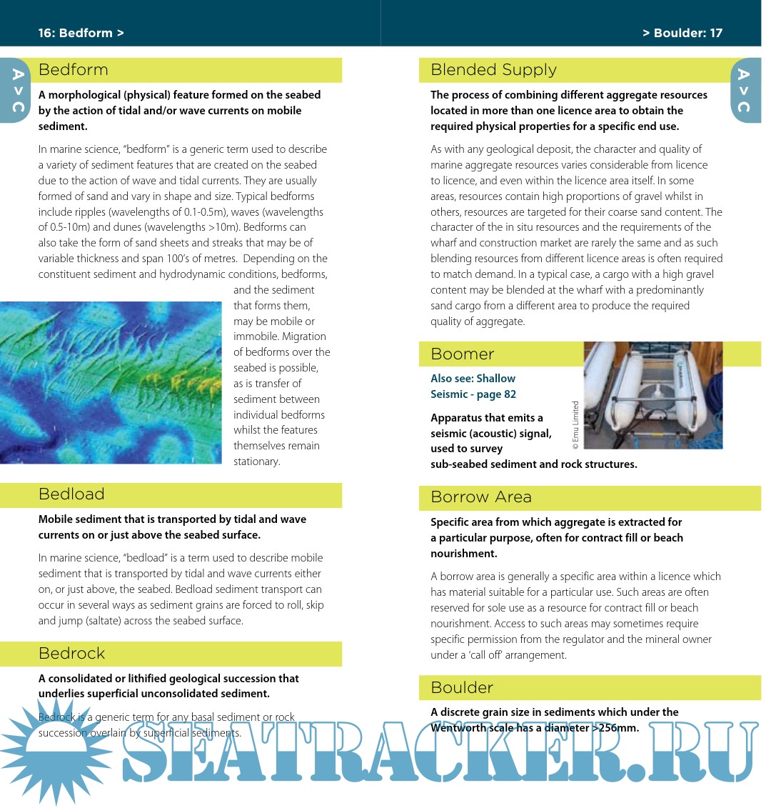 Year: - Language: English Author: - Genre: Dictionary ISBN: 978-1-906410-13-1 Format: PDF Quality: eBook Pages count: 49 Description: Even those who work inside the marine aggregate industry are sometimes confused by the sheer range of technical terms used to describe its activities. As with most other industries, it also abounds with a host of acronyms. This glossary recognises the need for clarity amongst stakeholders who, to various degrees, interact with the industry. Our hope is that it will serve as a useful reference for regulators, government advisers and others. An “intelligent pdf” version of this guide is available from the websites of both BMAPA and The Crown Estate with links to supporting information. The descriptions provided in this glossary are deliberately generic. The precise definitions for individual terms may alter when used for a specific purpose, such as an environmental impact assessment