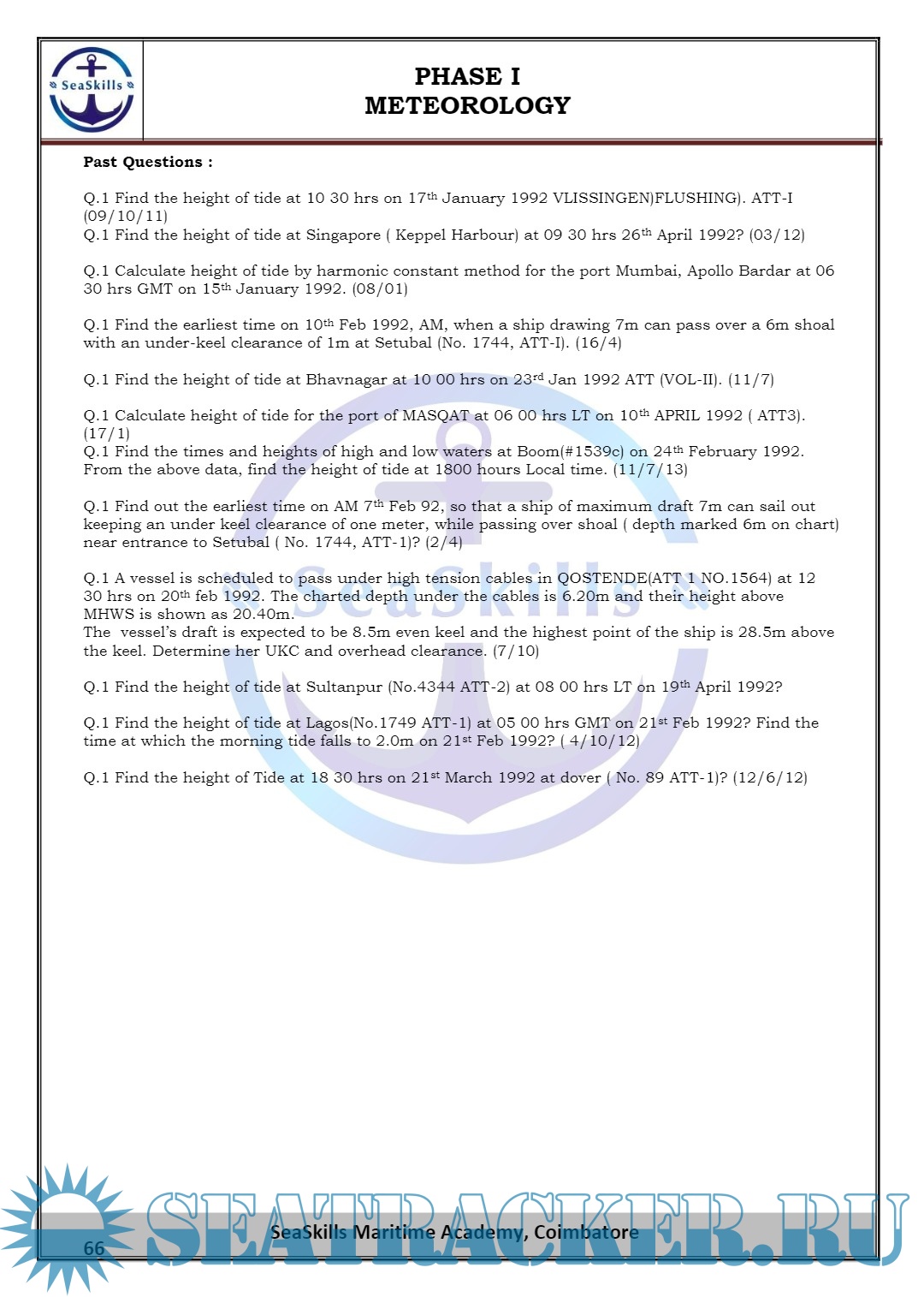 Year: 2024 Language: English Author: Seaskills Maritime Academy Publisher: Seaskills Maritime Academy, Coimbatore, India Format: PDF Quality: eBook Pages count: 66 Description: Paper: Meteorology Theory and Tide Calculations as per syllabus of Mercantile Marine Department (MMD), India Examinations for Phase I (Chief Mate F.G.)