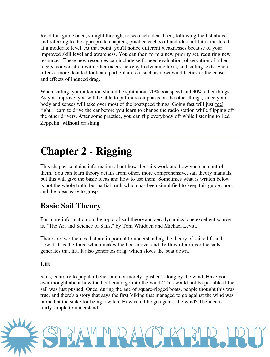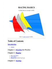 Year: 1995 Language: English Author: Johnson M. Publisher: Mark Johnson Format: PDF Quality: eBook Pages count: 55 Description: This guide is a detailed introduction to the sport of sailboat racing. It focuses particularly on intercollegiate racing in dinghies, such as the FJ and the Laser. However, the ideas can be applied to other boats, including keelboats, windsurfers, and iceboats. When a sailor begins to race, many questions come up, such as, "How do the sails work," "Why do I always get passed on the mark roundings," and "What's a mark rounding?" You can answer many of these questions by poring over various texts on aerodynamic theory and tactics manuals. In fact, that's one of the best ways to improve your knowledge about the sport in a thorough and detailed way.