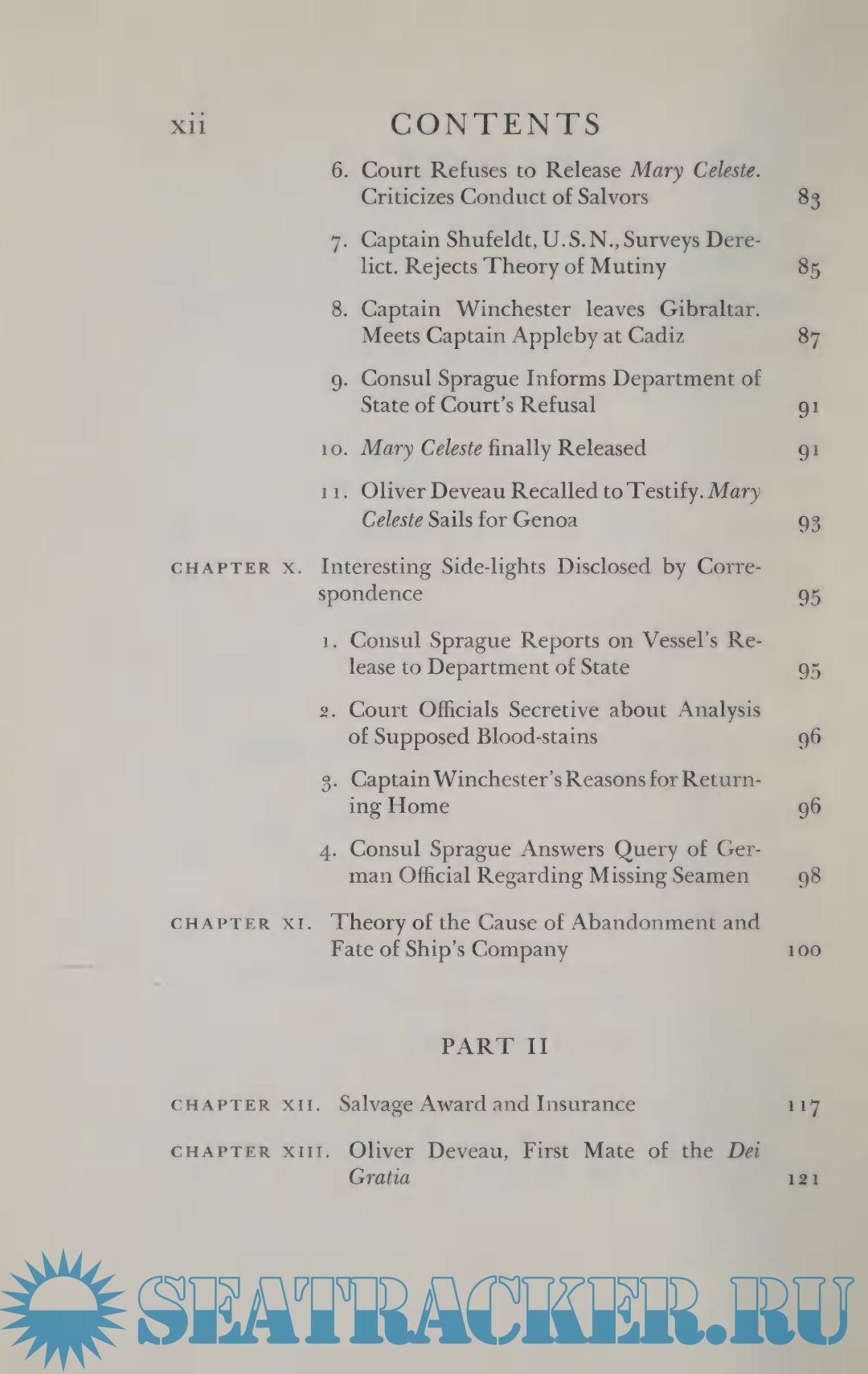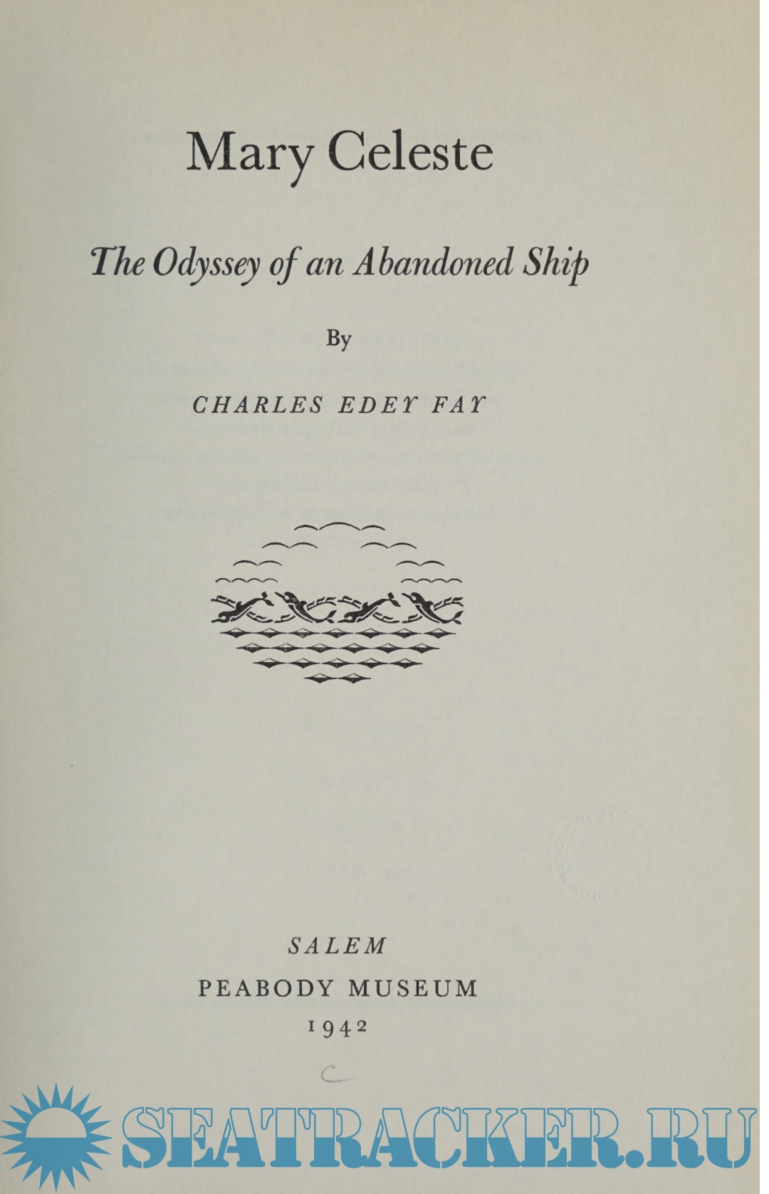 Year: 1942 Language: English Author: Fay C.E. Publisher: Peabody Museum Format: PDF Quality: eBook Pages count: 324 Description: For almost threescore years and ten, the story of the Mary Celeste—a small, seaworthy, American half-brig found wandering, ghostlike, without master or crew, over the waters between the Azores and the coast of Portugal—has continued to allure the interest of people all over the world, and to excite seemingly endless speculation on the part of “those who go down to the sea in ships.”
