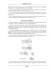Year: 1954 Language: English Author: Genese W.J. Genre: Manual Publisher: The boy scouts association Format: PDF Quality: eBook Pages count: 17 Description: This document provides instructions for tying several basic knots that are required as part of Boy Scout proficiency tests. It begins with an introduction to the importance of knot tying and some of Baden-Powell's thoughts on the topic. It then provides step-by-step instructions on how to perform a simple whipping to prevent rope ends from unraveling, which is part of the Tenderfoot level testing requirements. Additional knots that are covered for Tenderfoot level include the reef knot, sheet bend, clove hitch, bowline, round turn and two half hitches, sheepshank, and double overhand.