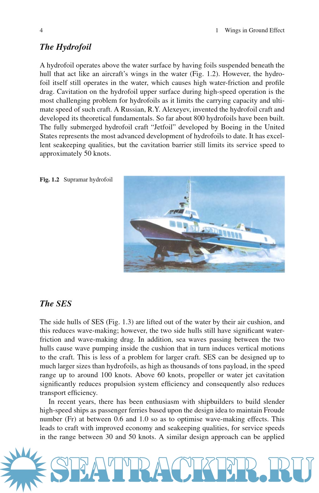 Description: In the last half-century, high-speed water transportation has developed rapidly. Novel high-performance marine vehicles, such as the air cushion vehicle (ACV), surface effect ship (SES), high-speed monohull craft (MHC), catamaran (CAT), hydrofoil craft (HYC), wave-piercing craft (WPC) and small water area twin hull craft (SWATH) have all developed as concepts, achieving varying degrees of commercial and military success. Prototype ACV and SES have achieved speeds of 100 knots in at calm con- tions; however, the normal cruising speed for commercial operations has remained around 35–50 knots. This is partly due to increased drag in an average coastal s- way where such craft operate services and partly due to limitations of the propulsion systems for such craft. Water jets and water propellers face limitations due to c- itation at high speed, for example. SWATH are designed for reduced motions in a seaway, but the hull form is not a low drag form suitable for high-speed operation. So that seems to lead to a problem – maintain water contact and either water propulsion systems run out of power or craft motions and speed loss are a problem in higher seastates. The only way to higher speed would appear to be to disconnect completely from the water surface. You, the reader, might respond with a question about racing hydroplanes, which manage speeds of above 200 kph. Yes, true, but the power-to-weight ratio is extremely high on such racing machines and not economic if translated into a useful commercial vessel.