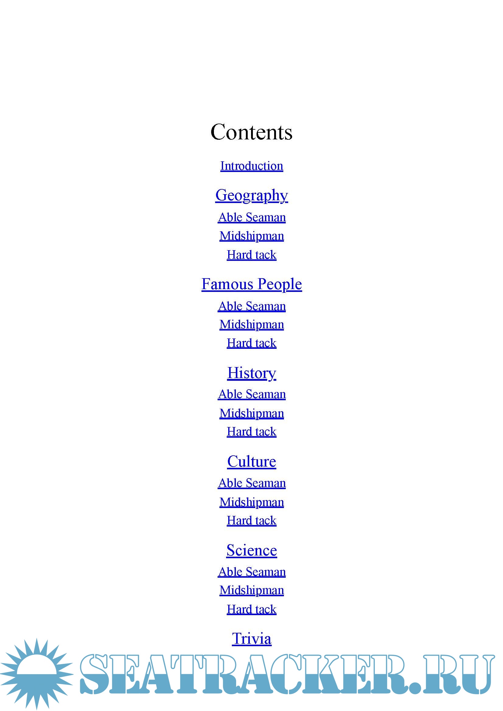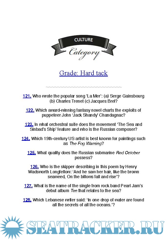 Description: The Adlard Coles Nautical Quiz Book is perfect for seafaring quizzers. It's divided into six nautically-flavoured categories, covering 1,000 questions. Categories range from Geography, Famous people and History to Culture, Science and Trivia. Each round is graded as easy (Able Seaman), medium (Midshipman) or tough (Hard Tack). A random sprinkling of nautical 'did-you-knows' adds a little salt to the mix and there's a quick-fire section at the end to keep everyone on their toes.