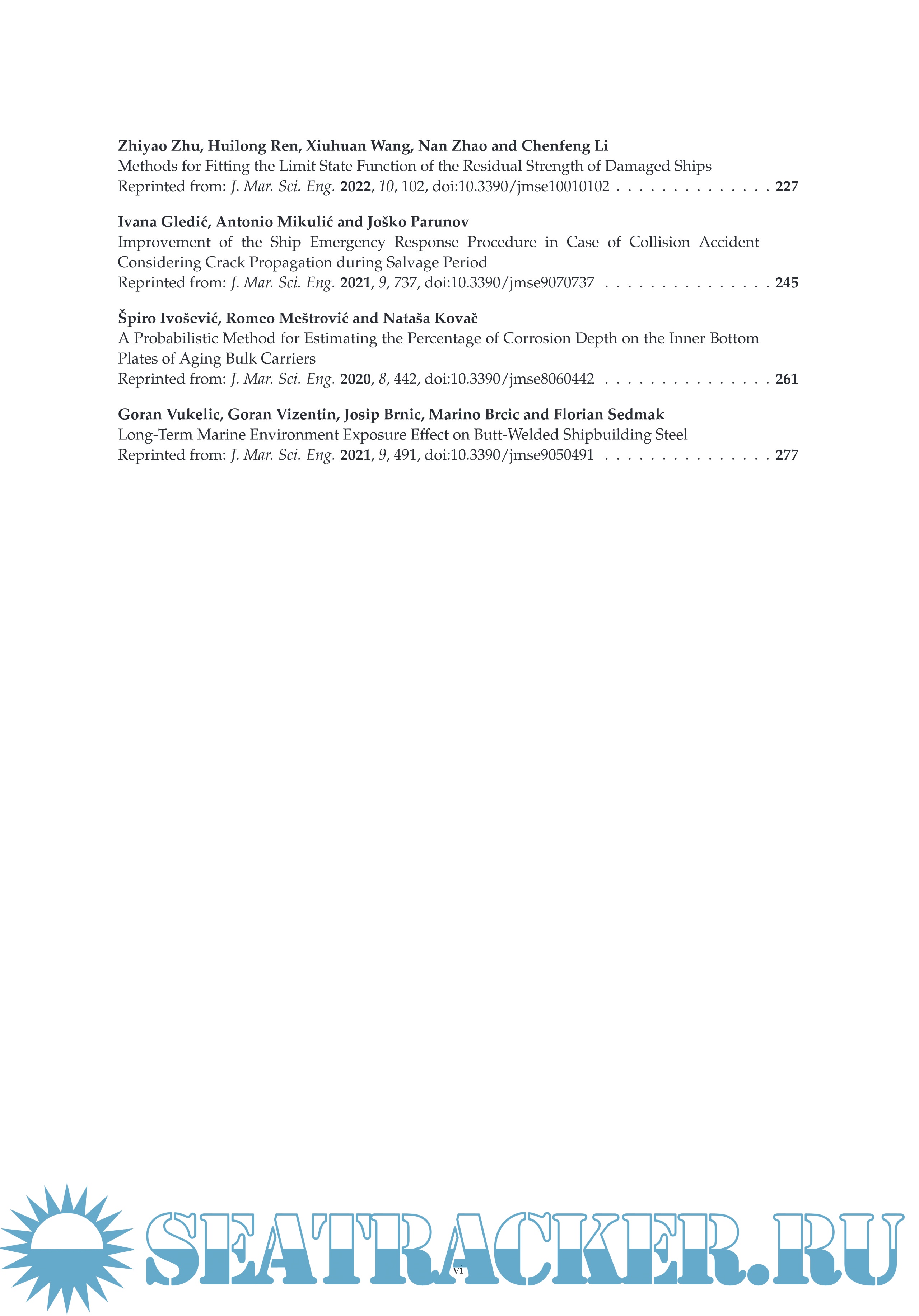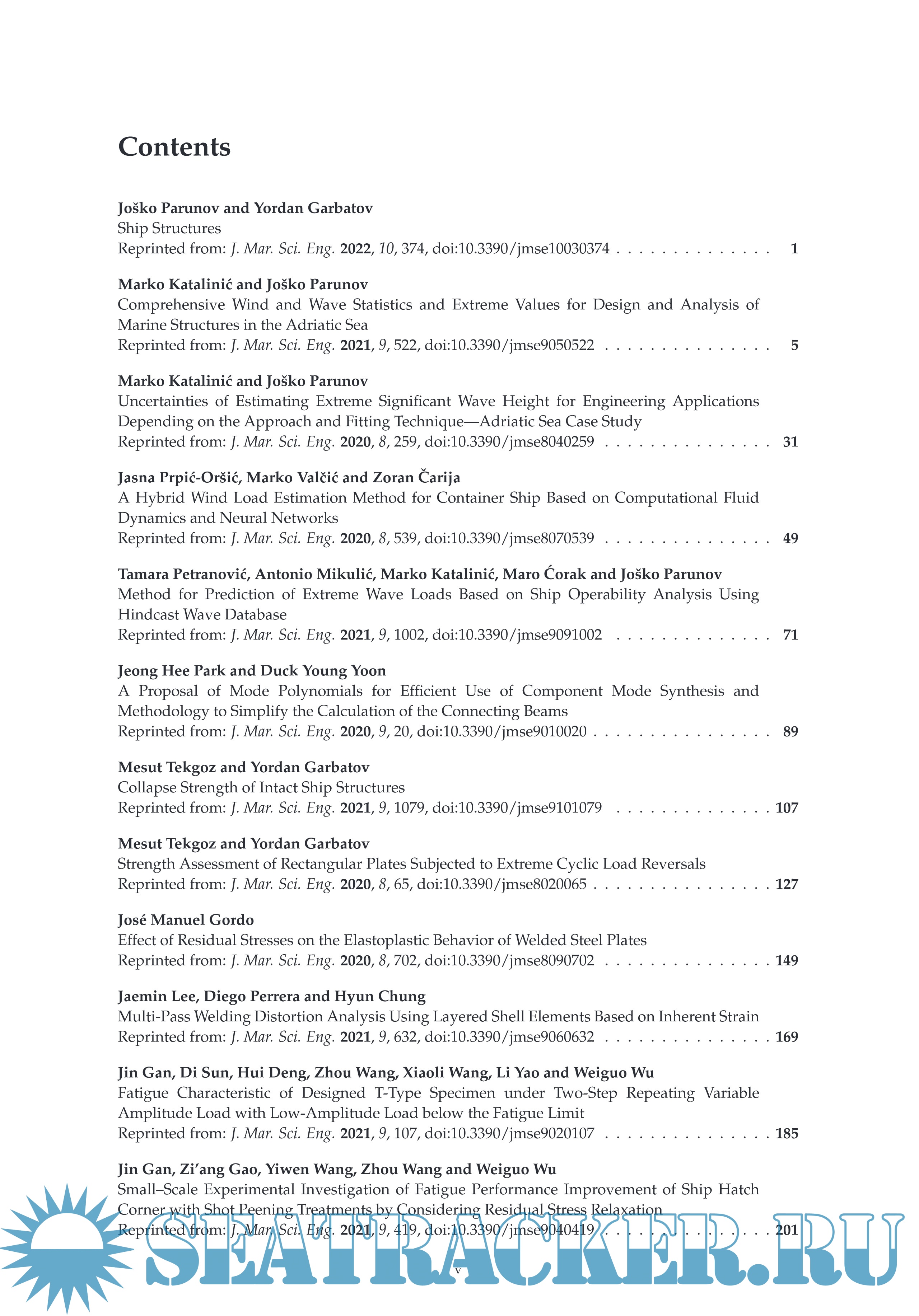 Year: 2022 Language: English Author: Joško Parunov, Yordan Garbatov Publisher: MDPI ISBN: 978-3-0365-4130-3 Format: PDF Quality: eBook Pages count: 298 Description: This book is a printed edition of the Special Issue on ship structures that was published in the Journal of Marine Science and Engineering. It contains an editorial and fifteen peer reviewed research studies in the field of ship structural design, analysis, and degradation. Two studies deal with corrosion degradation in ship structures, while the remaining contributions discuss three major steps for the efficient design and analysis of ship structures, i.e., the modelling of the environment and environmental loads, the analysis of a ship’s structural response, and the definition of criteria for different failure modes of ship structures.