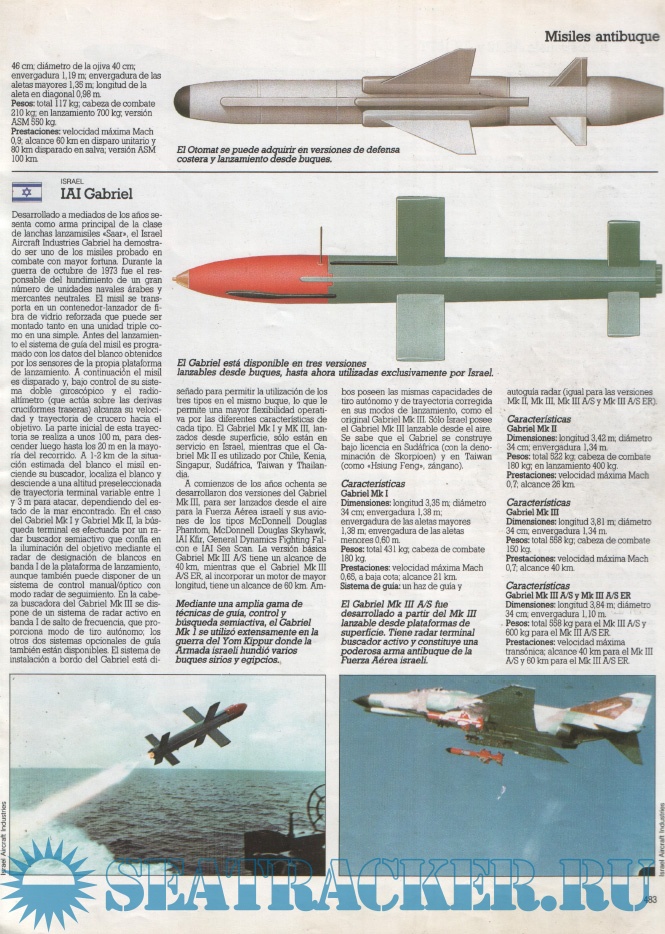 Enciclopedia de las Armas del Siglo XX.El misil antibuque se ha convertido en los ultimos años en el arma que permite a pequeñas naciones disputar la supremacia naval a las superpotencias. Los sucesos de 1982 en el Atlantico Sur han demostrado como la teoria se convertia en practica.