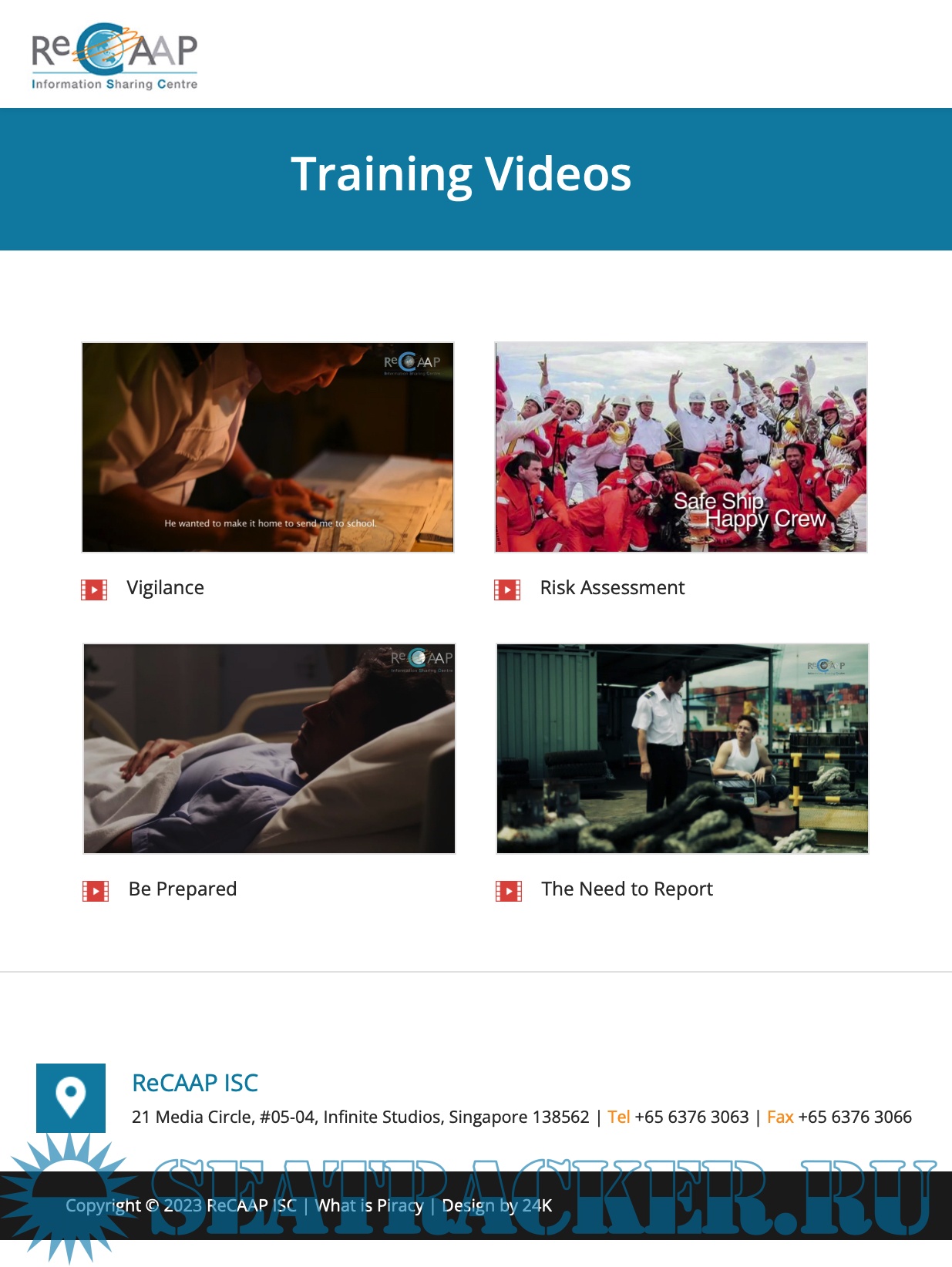 Description: Piracy and Armed Robbery against Ships in Asia Training Videos produced by Regional Cooperation Agreement on Combating Piracy and Armed Robbery against Ships in Asia (ReCAAP) with the following contents: