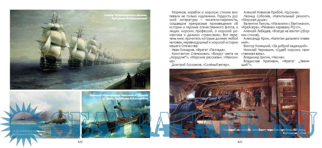 Год выпуска: 2023 Язык: Русский Автор: С. А. Балакин, С. В. Вьюгин, А. Г. Шутов Жанр: Энциклопедия Издательство: Молодежная Морская Лига Формат: PDF Качество: Изначально компьютерное (eBook) Количество страниц: 228 (456) Описание: Почему многие нормальные, здоровые мальчишки, имеющие нормальную, здоровую мальчишечью душу, обязательно начинают рано или поздно бредить морем? Почему ты, юный друг, впервые отправившись в морское плавание, вдруг ощущаешь мистический трепет, когда впервые осознаёшь, что берега скрылись из виду? Почему древние персы считали море священным? Почему греки выделили ему особое божество и притом, родного брата Зевса — грозного Посейдона? Разумеется, всё это не случайно. Недаром ведь с античных времён известно утверждение, что «люди делятся на тех, кто живы, тех, кто умерли, и тех, кто плавает по морям». Да, мореплавание — это особый мир, особый образ жизни и особая философия. И моряк, настоящий моряк, выходя в очередной раз в море, предвкушает встречу с другом. Со старым другом, с которым можно помолчать и подумать о смысле бытия. В то же время никогда не стоит забывать об уважительном отношении к морю. Только «на Вы»! Всякие попытки легкомысленного, пренебрежительного отношения к морской стихии влекут за собой неуспех, а бывает, и катастрофу. Среди многих способов перемещения по водной поверхности, наверное, самым азартным, интересным и приносящим массу эмоций является плавание под парусами. Сорок пять лет назад один из авторов этой книги на шестивёсельном яле впервые поднял свой парус. Но даже сегодня впечатление от восторга, что благодаря ловкости всего экипажа яла нам удалось поймать ветер в упряжку парусов и заставить его двигать нашу шлюпку, остаётся ярким и незабываемым. Ибо радость — один из основных смыслов человеческого бытия. Мореплавание — это верный способ сделать так, чтобы твоего детского смеха и радостного ожидания открытий хватило на всю твою жизнь. Для того чтобы твоя дорога в море приносила радость, тебе, юный друг, нужно многое узнать. Надеемся, в этом тебе поможет наша книга. Семь футов тебе под киль, юнга, в большом жизненном плавании!