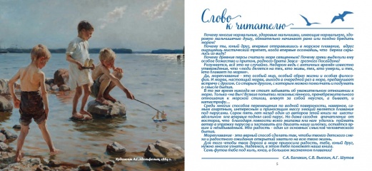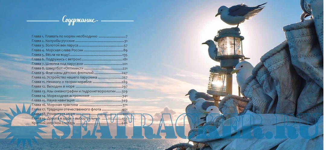 Глава 1. Плавать по морям необходимо Глава 2. Колумбы русские Глава 3. Золотой век паруса Глава 4. Морская слава России Глава 5. Вёсла на воду! Глава 6. Подружись с ветром! Глава 7. Шлюпка под парусами Глава 8. Швертбот «Оптимист» Глава 9. Флагманы детских флотилий Глава 10. Устройство нашего парусника Глава 11. Немного о теории корабля Глава 12. Выходим в море Глава 13. Азы океанографии и гидрометеорологии Глава 14. Мореходная астрономия Глава 15. Наука навигация Глава 16. Морская практика Глава 17. Традиции отечественного флота Глава 18. Романтика моря Глава 19. Дорога в море – выбор сильных Краткий морской словарь