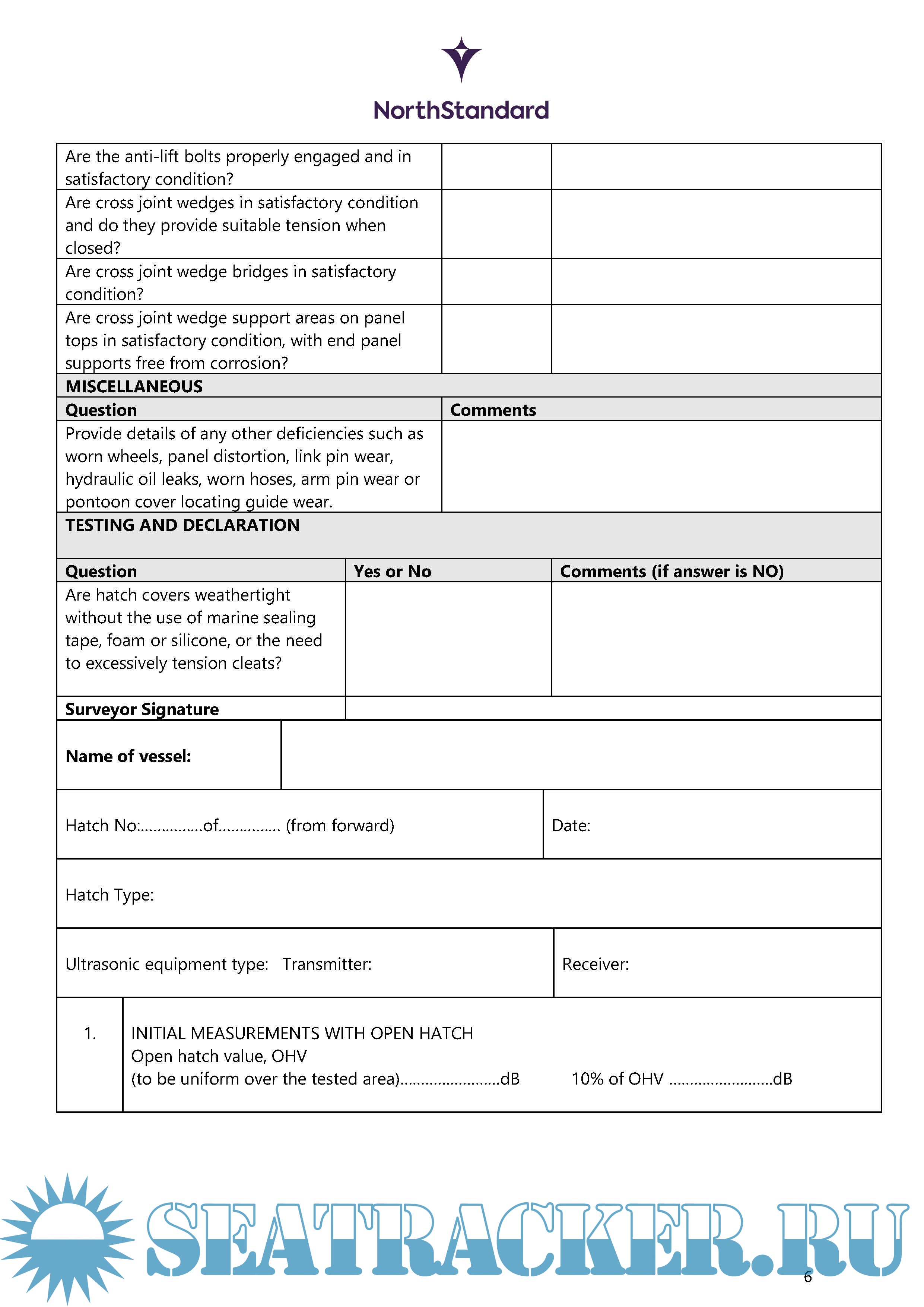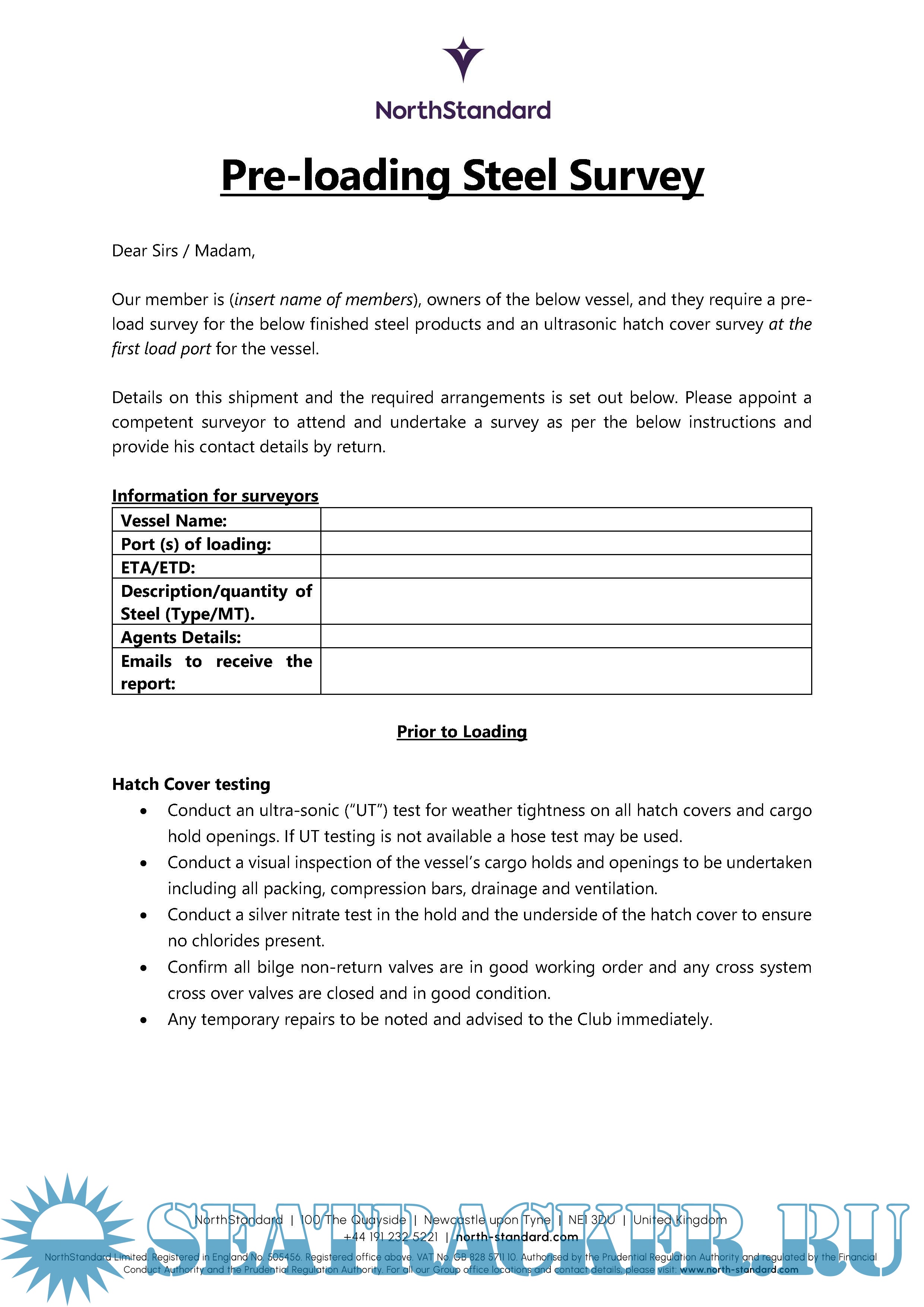Description: Pre-loading Steel Survey - Surveyor's instructions.