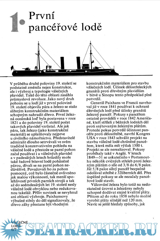 Year: 1986 Language: Czech Author: Hynek Vladimir, Klucina Petr. Genre: Historical Publisher: Nase Vojsko Format: PDF Quality: eBook Pages count: 334 Description: Valecne lode - Военные корабли - Чешский справочник по военно-морским силам всех времен и стран. Состоит из 8 томов. Druhý svazek-od krymské po rusko-japonskou válku-je věnován obrněné flotile z 19.století, která začala výstavbou železné pásové fregaty Warrior v Anglii v roce 1860. Americké monitory z dob americké občanské války, Evropské kasematické pásovce, barbetové pásovce s monstrózními děly ráže až 431 mm a nakonec klasické pásovce s hlavní ráží ve věžích a rozvinutým rezervačním schématem. Souběžně se vyvíjela fregata třídy křižníků, která se následně rozdělila na dvě podtřídy - obrněné a pásové. Na počátku 80.let 19. století se konečně objevila nová třída minonosných lodí vyzbrojených samohybnými Minami, jak se tehdy nazývala torpéda. V knize je několik desítek schémat lodí různých tříd, řezy věžových instalací, rezervační schémata, barevné profily. Zvažovány jsou bitvy Španělsko-americké wony a rusko-japonské - bitva ve Žlutém moři, Tsushima, Bitva Vladivostocké jednotky křižníků. Kniha končí vznikem Dreadnought-bitevní lodi nové generace.
