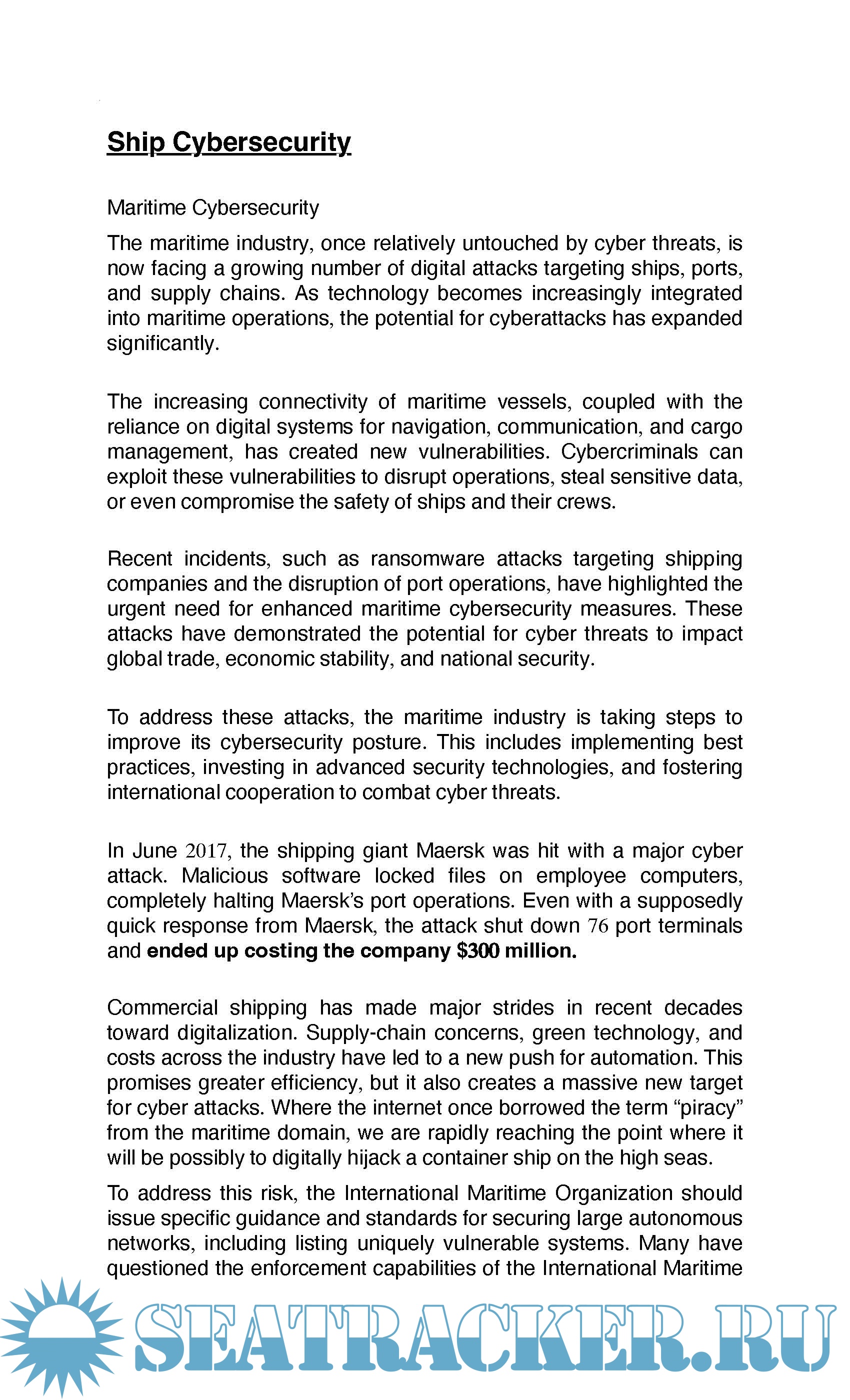 Description: The maritime industry, once relatively untouched by cyber threats, is now facing an increasing number of attacks due to the growing reliance on technology. The integration of digital systems into ship operations, from navigation to cargo management, has created new vulnerabilities that cybercriminals can exploit.