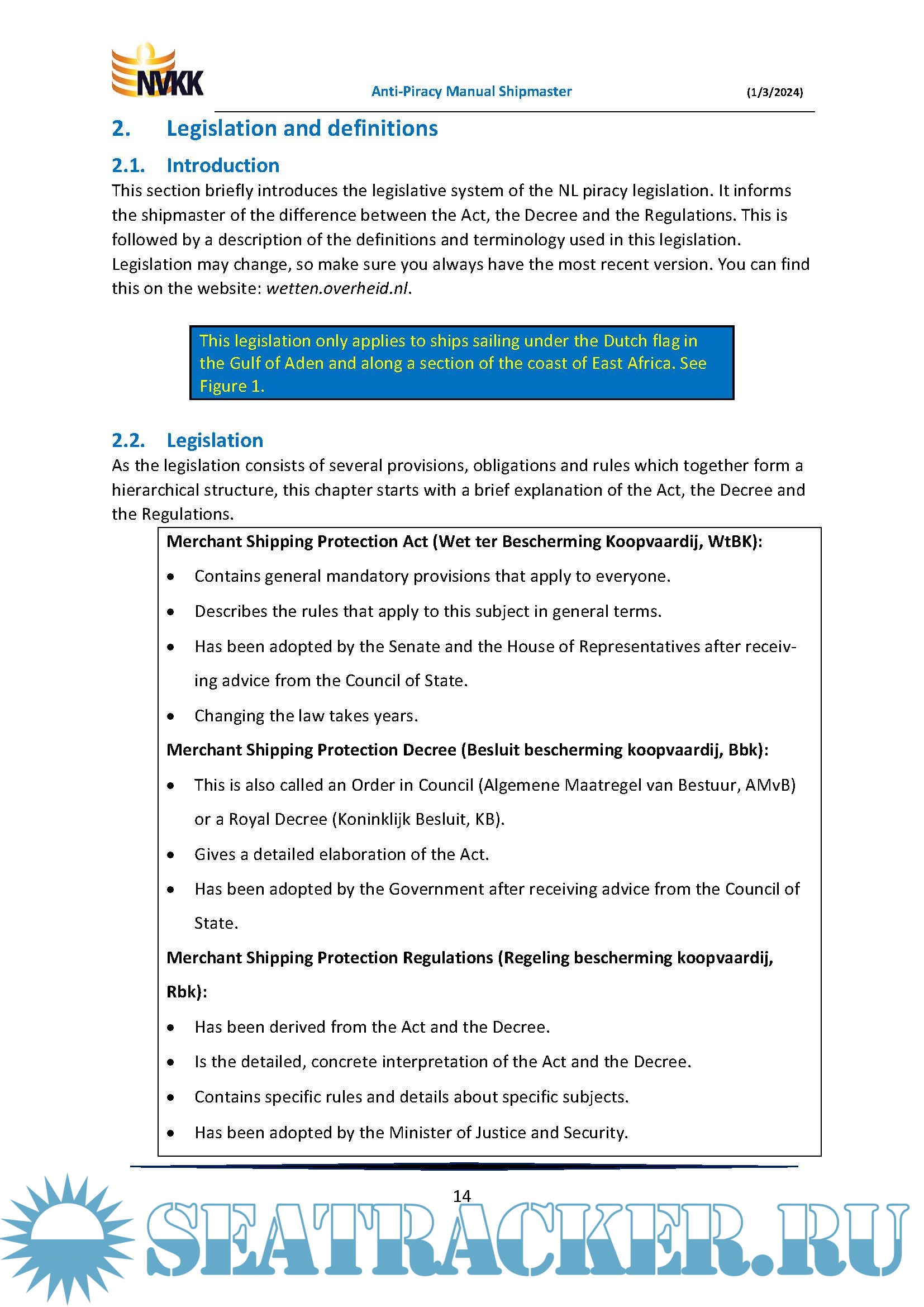 Additional info: This Manual only applies to the Gulf of Aden and along a section of the coast of East Africa.