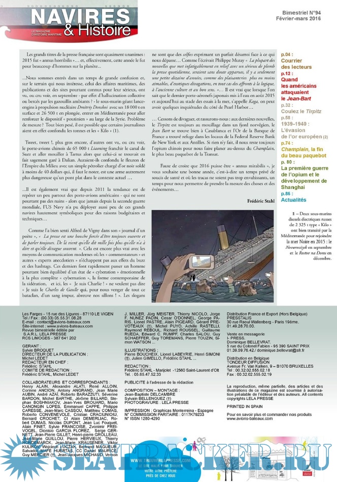 Year: 2016 Language: French Author: Lela Presse Genre: Periodical publication Edition: 2016 02-03 Format: PDF Quality: eBook Pages count: 100 Description: Publié pour la première fois en 1999, ce magazine traite l'histoire maritime, passée ou présente, de toutes les marines du monde. Une parution incontournable pour tous les férus d’histoire et d’actualité, avec une multitude de photos originales, issues pour une grande part de collections privées !... Traversez l’histoire sur toutes les mers du Monde
