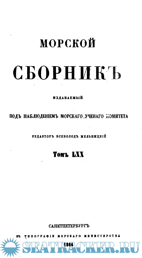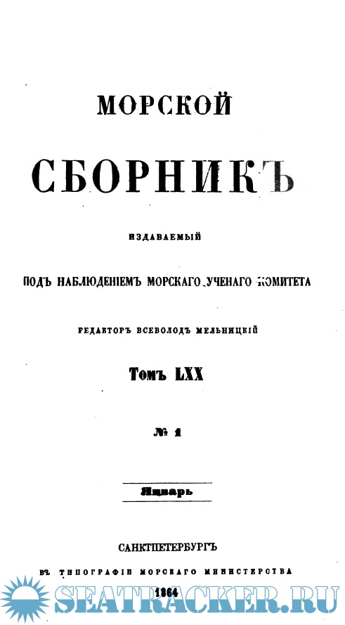 Год выпуска: 1864 Язык: Русский Автор: группа авторов Жанр: Периодическое издание (журнал) Формат: PDF Качество: Отсканированные страницы Количество страниц: 5990 Описание: «Морской сборник» – официальный ежемесячный журнал Военно-Морского Флота России. Он выходит в свет с1848 года без перерыва на войны или революции.
