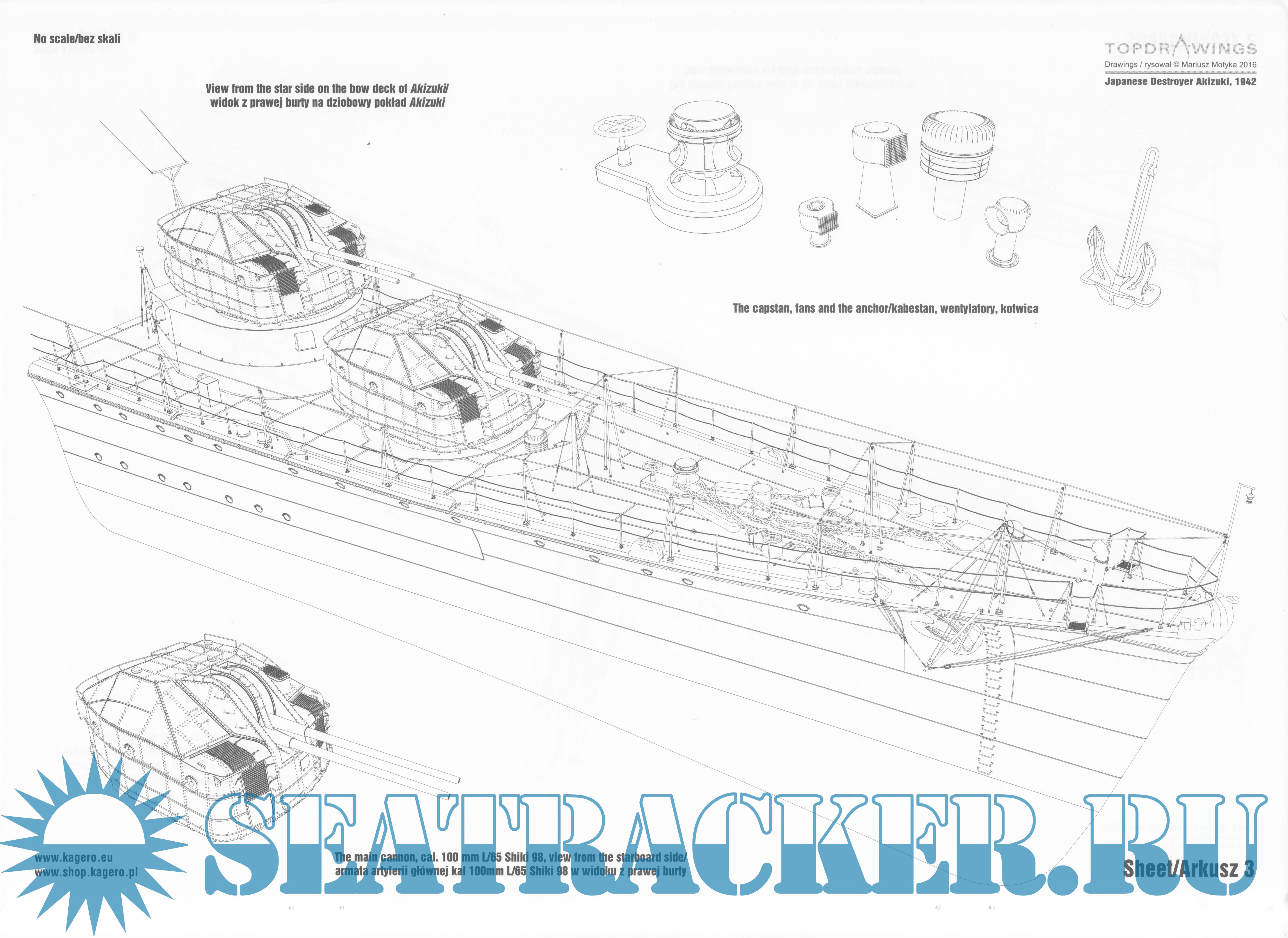 Year: 2016 Language: English, Polish Author: Koszela W. Publisher: Kagero Format: JPEG Quality: eBook Pages count: 44 Description: Number 38 in this series is about the famous Japanses Destroyer Akizuki of WW2. Scale plans include main superstructure details from 1942, at various levels, navigation bridge, upper deck, funnel, artillery/batteries director, turrets, masts, radar antennas, cutaways, etc. As a bonus there A3 (A4) size sheet with top & side views of the battleship and her details. All drawings are first class and you can use them to add much more detail to your scale kit using plasticard or other materials.
