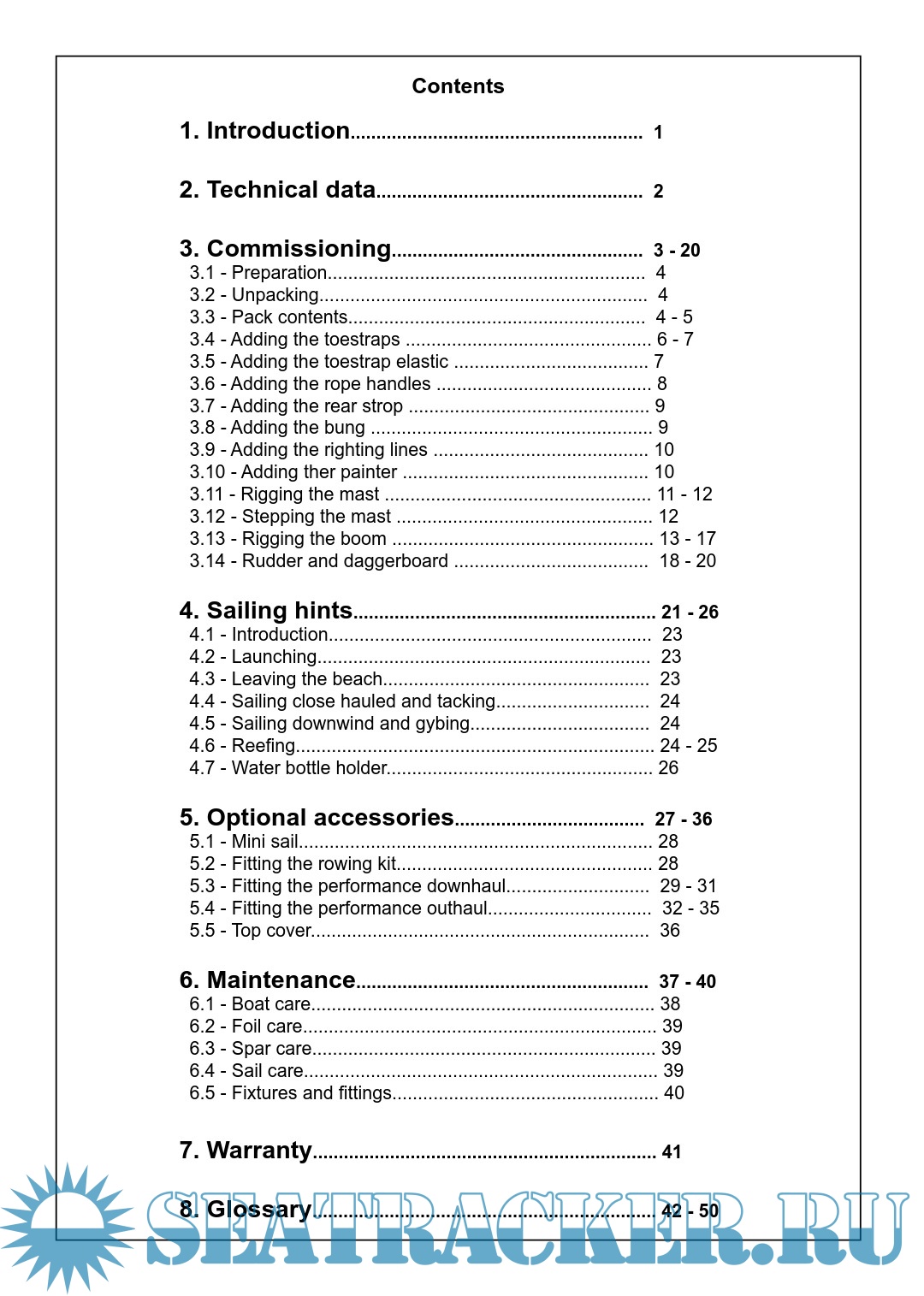 Year: - Language: English Author: RS Aero Genre: Manual Publisher: RS Aero Format: PDF Quality: eBook Pages count: 52 Description: The RS Tera is an exciting boat to sail and offers fantastic performance. This manual has been compiled to help you to gain the maximum enjoyment from your RS Tera, in a safe manner. It contains details of the craft, the equipment supplied or fitted, its systems, and information on its safe operation and maintenance. Please read this manual carefully and be sure that you understand its contents before using your RS Tera