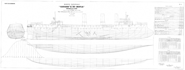 Архивные чертежи французского крейсера 2-го ранга CASSARD 1886 год