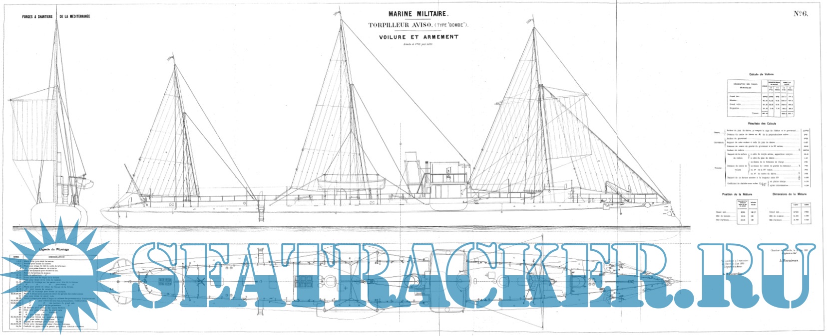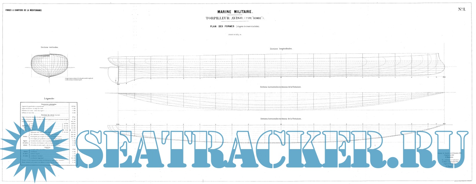 Архивные чертежи французского миноносца LANCE 1886 год - нет данных [1886, TIFF]