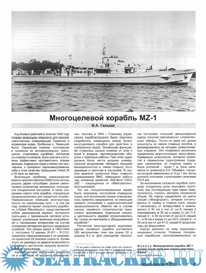 Год выпуска: 2011 Язык: Русский Автор: группа авторов Жанр: Периодическое издание (журнал) Издание: 2011-02 Формат: PDF Качество: Изначально компьютерное (eBook) Количество страниц: 68 Описание: Представлены справочник по корабельному составу Оттоманского флота период русско-турецкой войны 1877-1878 гг.; статьи по малоизвестной серии советских послевоенных тральщиков, немецким многоцелевым кораблям типа MZ, итальянскому противолодочному кораблю «Альбатрос» и другие материалы.