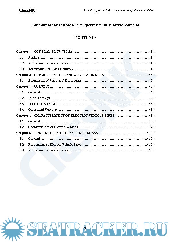 Year: 2024 Language: English Author: ClassNK Genre: Guide Edition: Version 2.0 December 2024 Format: PDF Quality: eBook Pages count: 30 Description: This Guidelines provides vehicle carrier owners and management companies with useful information and a framework regarding voluntary and advanced fire safety measures for the maritime transportation of electric vehicles. This Guidelines provides vehicle carrier owners and management companies with useful information and a framework regarding voluntary and advanced fire safety measures for the maritime transportation of electric vehicles. December 2024 Revision Adding countermeasur for Escaping.