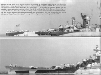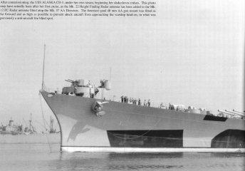 Description: The Alaska-class were six large cruisers ordered before World War II for the United States Navy (USN), of which only two were completed and saw service late in the war. The USN designation for the ships of this class was 'large cruiser' (CB), a designation unique to the Alaska-class, and the majority of leading reference works consider them as such. However, various other works have alternately described these ships as battlecruisers despite the USN having never classified them as such, and having actively discouraged the use of the term in describing the class. The Alaskas were all named after territories or insular areas of the United States, signifying their intermediate status between larger battleships (which were mostly named after states) and smaller heavy and light cruisers (which were named after cities)