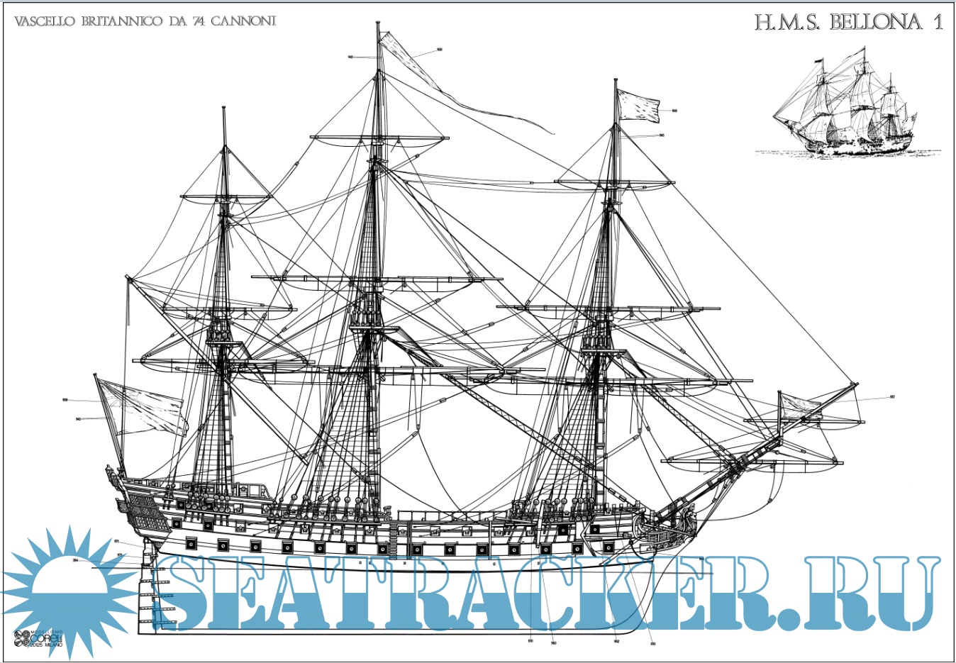 Чертежи и руководство по изготовлению модели парусного корабля HMS Bellona - Corel