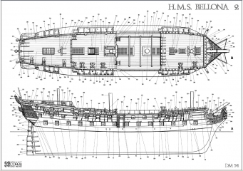 Описание: Чертежи и руководство по изготовлению модели парусного корабля HMS Bellona - Corel