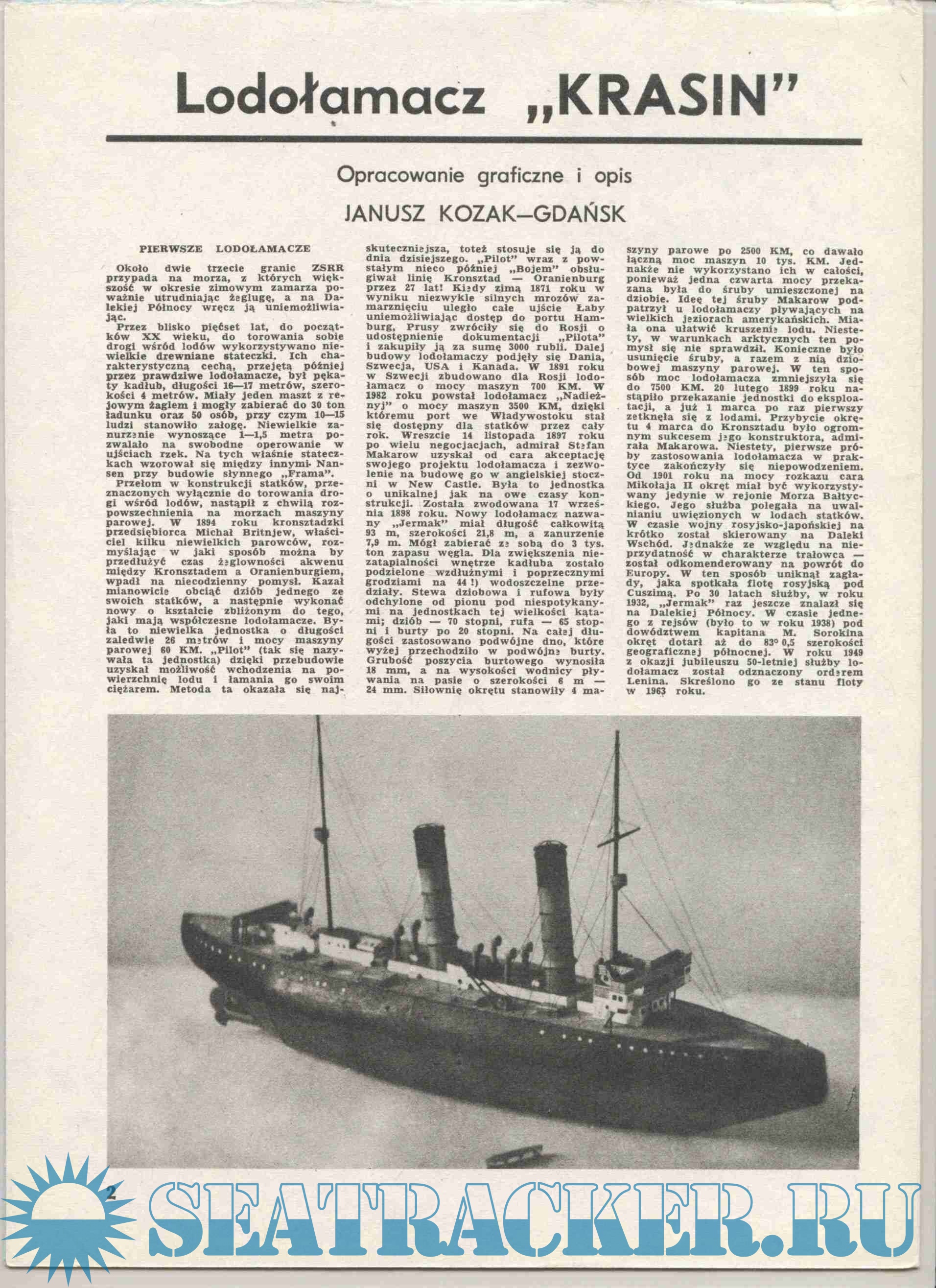 Год выпуска: 1985 Язык: Польский Автор: Януш Козак Жанр: Кто действительно занимается судо- (и не только) моделизмом :) Издание: Maly Modelarz (1985.07) Формат: JPEG Качество: Отсканированные страницы Количество страниц: 15 Описание: 15 листов цветных выкроек и инструкций для изготовления бумажной модели ледокола "Красин"