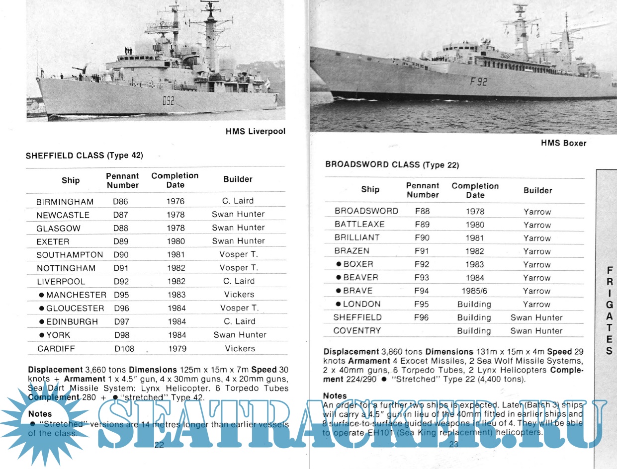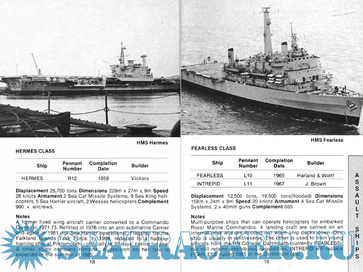 Year: 1985 Language: English Author: Mike Critchley Genre: Catalog, Encyclopedia, Historical Publisher: Maritime Books Format: PDF Quality: eBook Pages count: 116 Description: This revised and updated guide to Ships, Aircraft and Armaments of the Royal Navy has now been expanded to include ships of the Royal Marines and the Border Agency as of 1986. The book begins with a detailed overview of the current state of the Royal Navy, followed by sections detailing the fleets of the Royal Navy, Royal Navy auxiliary vessels and support vessels operated under contract. This also includes vessels of the Royal Marines, Land Forces and Border Troops. This volume, which contains color images for each class of ships, also contains silhouettes, class lists, pennant numbers, technical specifications and brief notes. At the end of the book is a list of ships mothballed in the United Kingdom and performing a secondary role after decommissioning, as well as a brief description of ships that have been scrapped since the publication of the previous edition.