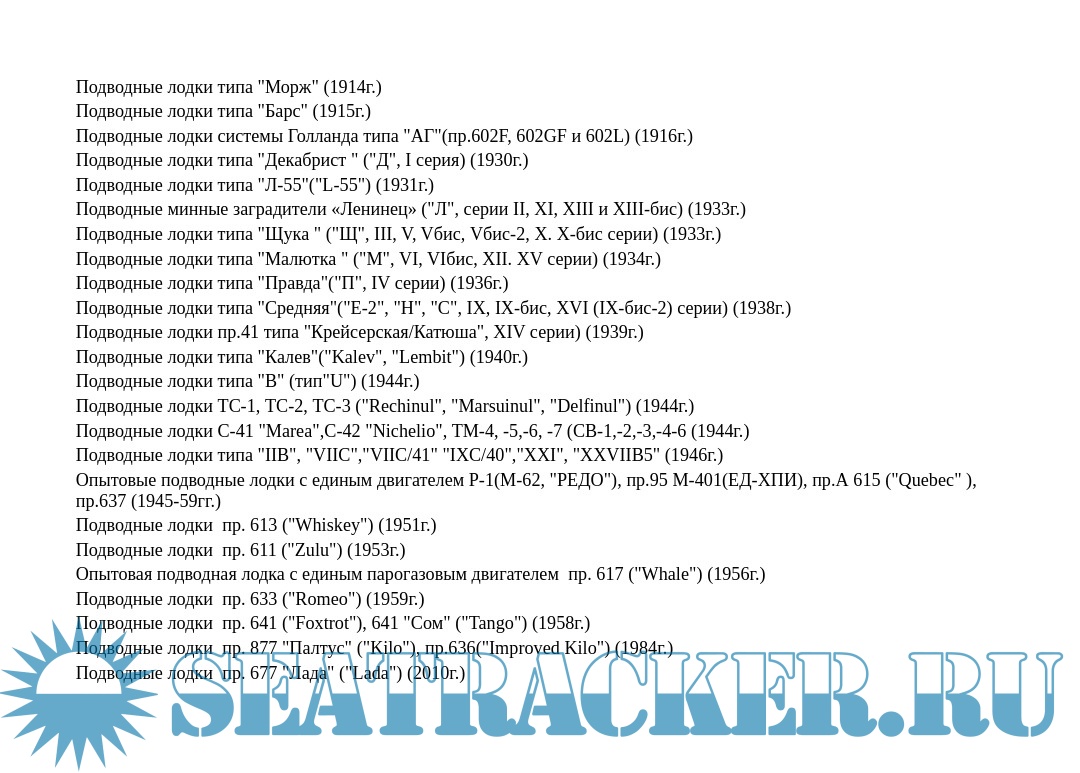 Описание: Неатомные торпедные, ракетно-торпедные (многоцелевые) СССР и России