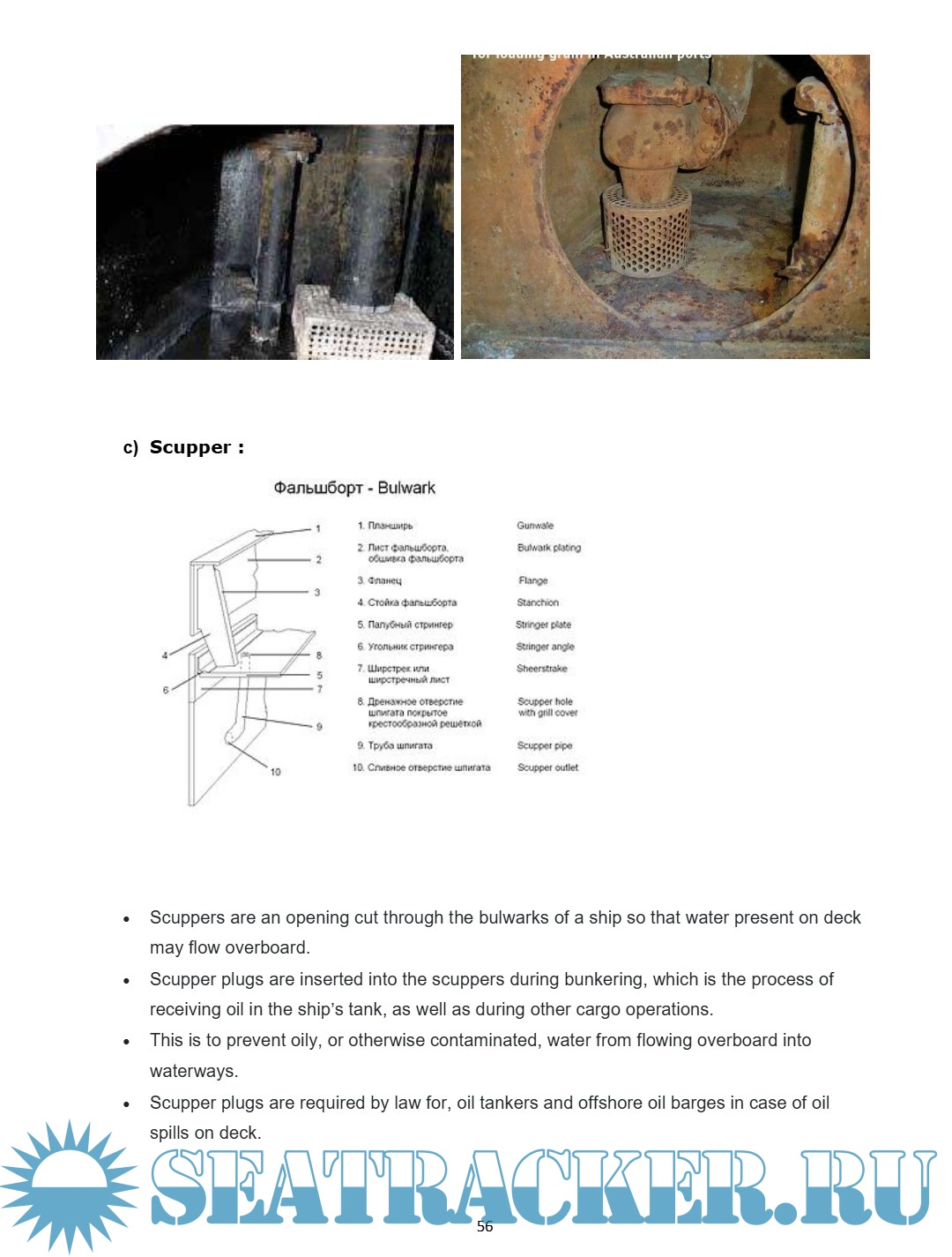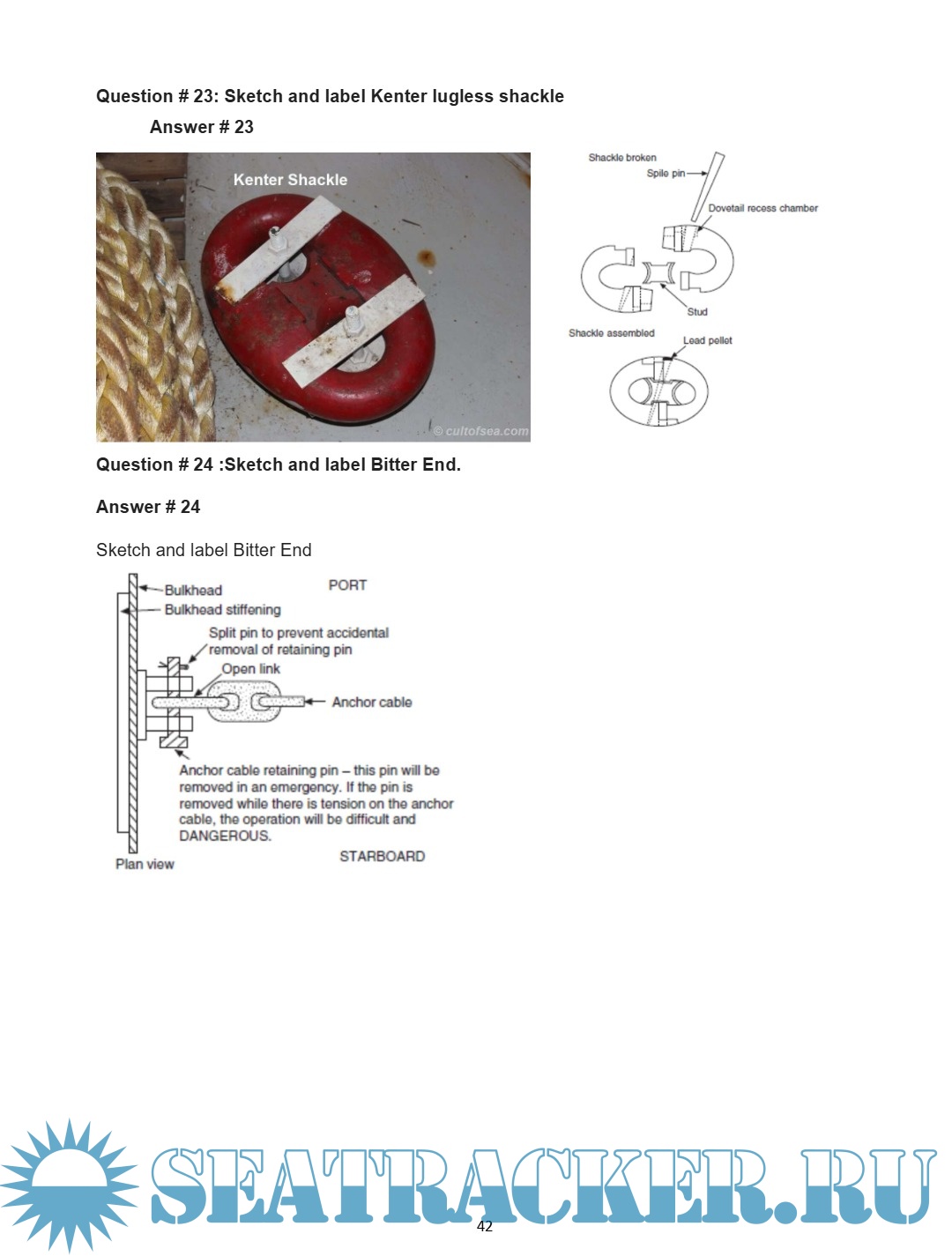 Cables and chain lockers, construction of Hawse pipes, spurling pipes securing.