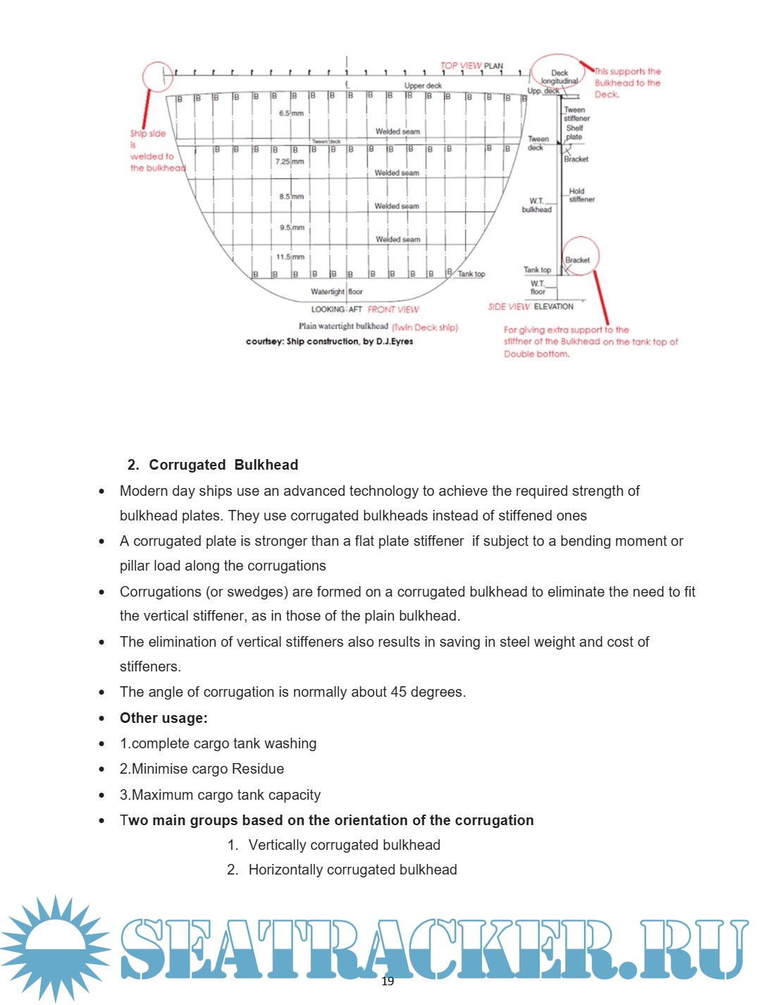 Functions, construction, and stiffening, including collision & corrugated bulkheads.