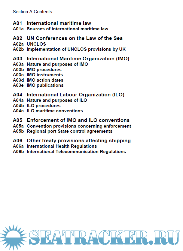 A MARITIME TREATIES A-1 to -20 B THE FLAG STATE B-1 to -64 C THE SHIPOWNER, MANAGER C-1 to -19 AND OPERATOR D THE SHIP D-1 to -183 E THE MASTER AND CREW E-1 to -166 F THE SHIP'S EMPLOYMENT F-1 to -89 G INSURANCE AND CLAIMS G-1 to -35 H AT SEA H-1 to -76 I IN PORT I-1 to -90