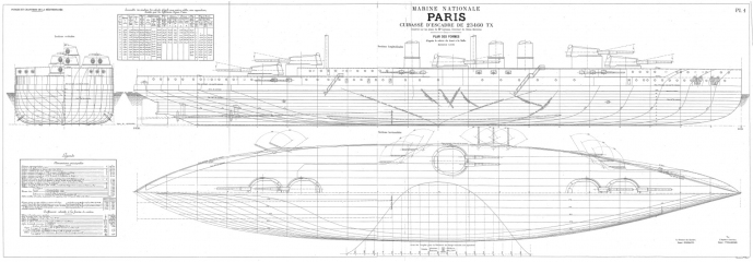 34 листа архивных чертежей французского линкора PARIS 1912 год