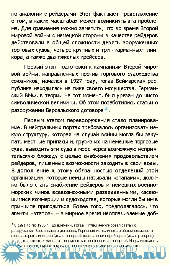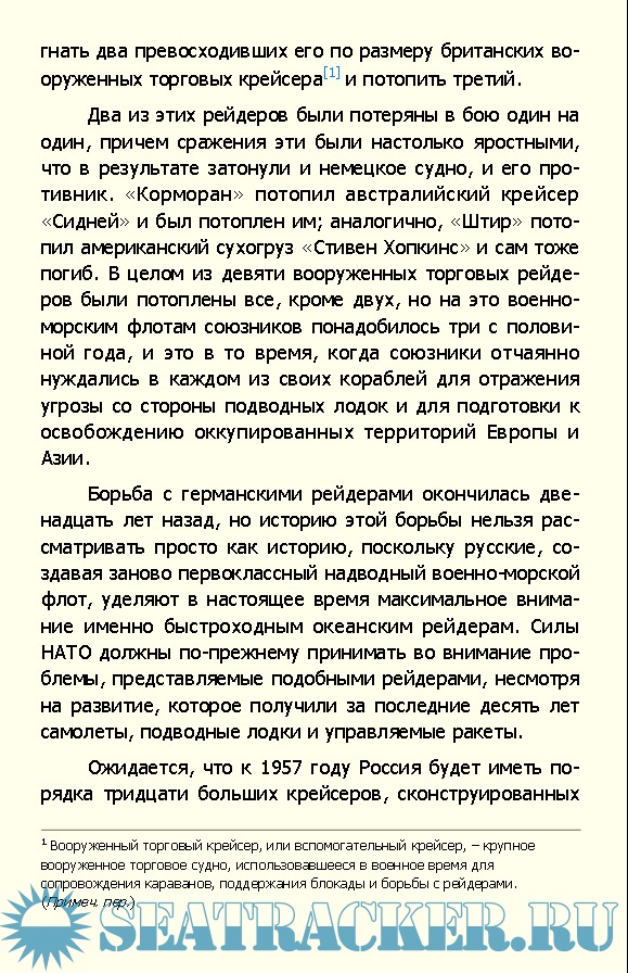 Описание: Автор рассказывает о знаменитых пиратских рейдах немецких кораблей в XX веке. Эти мощные плавучие арсеналы, замаскированные под безобидные нейтральные сухогрузы, своими действиями умело и планомерно вносили хаос в систему торгового судоходства противника. За первые три самых успешных для них года рейдеры потопили почти втрое больше кораблей, чем весь немецкий надводный флот Книга основана на подлинных материалах; представлены официальные отчеты, записи бортовых журналов, свидетельства очевидцев