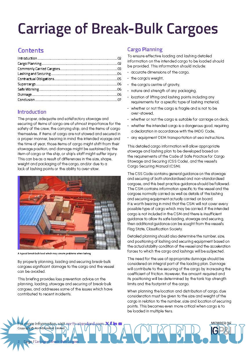 This briefing provides loss prevention advice on the planning, loading, stowage and securing of break-bulk cargoes, and addresses some of the issues which have contributed to recent incidents.
