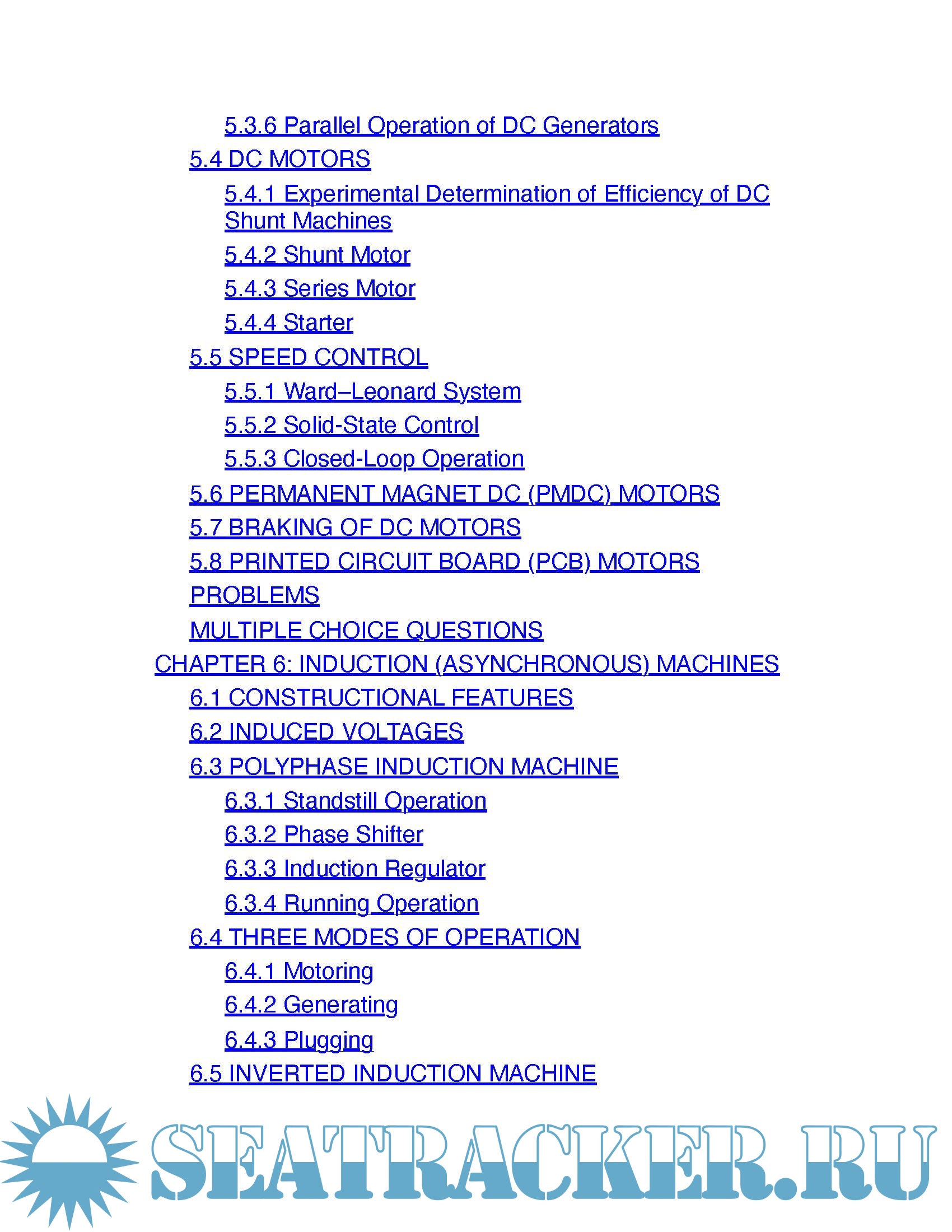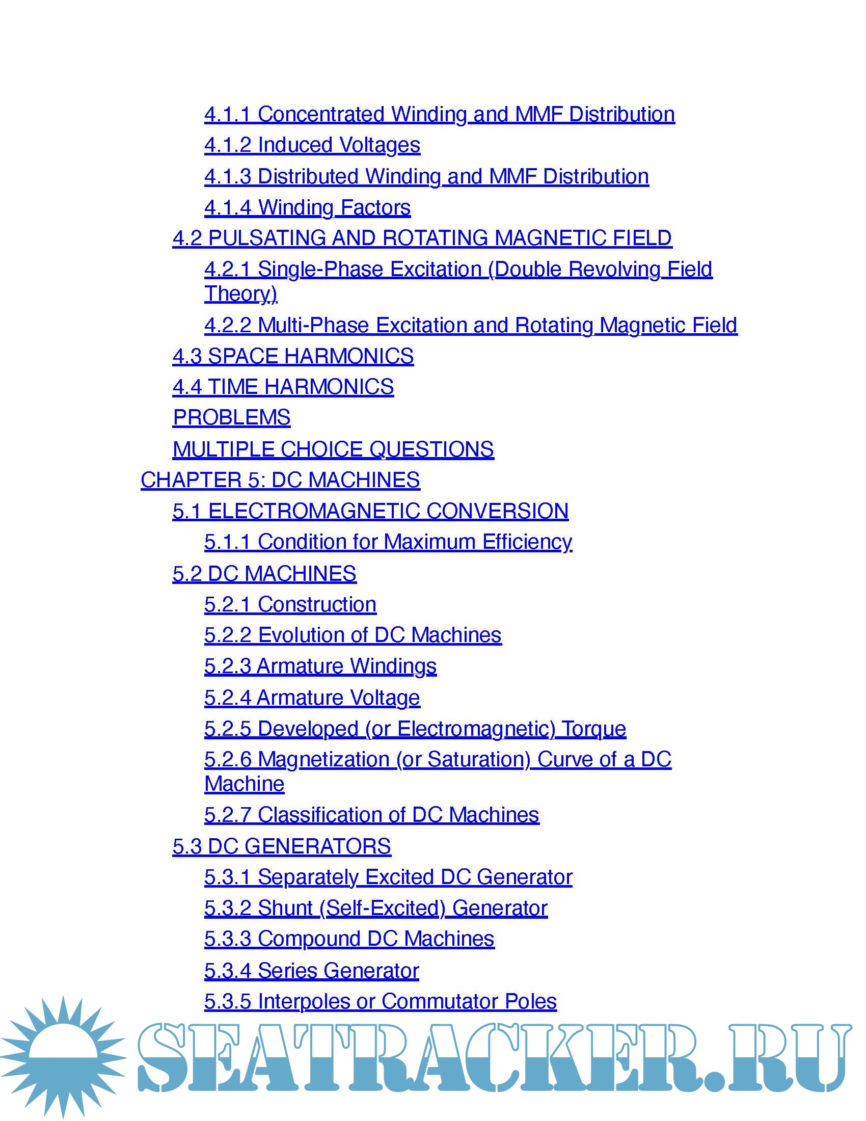 The book then extensively discusses different types of electrical machines, dc machines, three-phase induction machines, and three-phase synchronous machines; single-phase motors, which are widely used in household and office appliances.