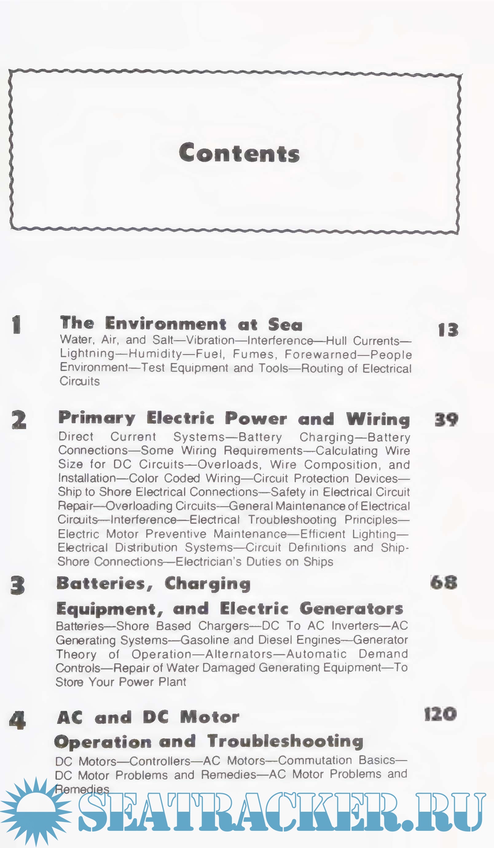 Description: This book is about that equipment and the electrical require­ments and power sources which provide safety and comfort on board. Some of it is simple and straightforward, and some is a little more complicated. It operates much like our land based equipment in some cases, but there are differences which, if unobserved, might result in a situation involving life or death. How important is this electrical and electronic equipment on board? It is like a great heart of the Master Mariner. It pulses and from its power all other functions are dependent.