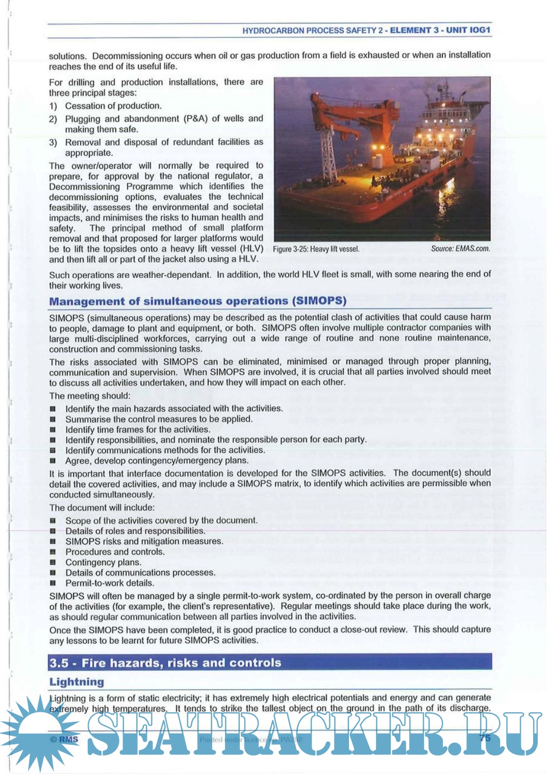 Year: 2017 Language: English Author: RMS Genre: Guide Publisher: RMS Edition: 2 ISBN: 978-1-906674-67-0 Format: PDF Quality: Scanned pages + text layer Pages count: 141 Description: The Essential Health and Safety Guide to International Oil and Gas Operational Safety is a comprehensive resource designed for professionals working in the oil and gas industry, both onshore and offshore, and those in connected industries. It provides an essential reference to effectively manage health and safety responsibilities, particularly in the hazardous oil and gas sector. This guide focuses on hydrocarbon process safety and emphasizes the importance of process safety management, offering practical solutions to real-world workplace health and safety issues. The guide is an excellent study resource for those pursuing the NEBOSH International Technical Certificate in Oil and Gas Operational Safety. It is structured to align with the syllabus of the NEBOSH qualification, providing an overview of key topics such as hazards in extraction, storage, and processing, fire protection, emergency response, logistics, and transport operations. The inclusion of full-color photographs, tables, and sample documents aids in the practical application of safety measures, offering visual insight into both good and bad working practices. The guide also refers to international conventions, recommendations, codes, guidance, and standards, contextualizing health and safety topics globally. To support comprehension, the publication includes exam-style questions and answers, allowing users to assess their understanding. Additionally, the guide is enriched with photographs and schematics that illustrate both effective and ineffective safety practices, making it an invaluable tool for professionals and students alike.