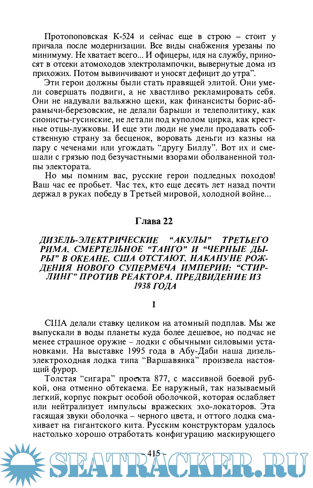 Год выпуска: 2000 Язык: Русский Автор: Калашников М. Жанр: Историческое Издательство: Форум Формат: PDF Качество: Изначально компьютерное (eBook) Количество страниц: 562 Описание: Неизвестный Советский Союз. Сверхоружие Русского Медведя. Мезосферные агрессоры, охотники на невидимок и боевые экранопланы. Кто побеждал в Третьей Мировой, холодной войне? Боевые экранопланы и орбитальные истребители, плазменное оружие и летающие танки, «птицы» противолодочной войны и титановые «наутилусы», рентгеновские «линзы» и микрогравитационные технологии — всё это было в неизвестном для многих Советском Союзе, позволяло ему выйти победителем в холодной войне, став самой сильной цивилизацией мира. Но страну сгубили лень, тупость и продажность т.н. «элиты». Книга ценна не только уникальным фактическим материалом. Яркая и страстная, она зовёт преодолеть заложенное в нас пропагандой чувство национальной неполноценности, создать новую элиту, способную твёрдой рукой править державой в переломные годы, вернуть ей утраченное величие.